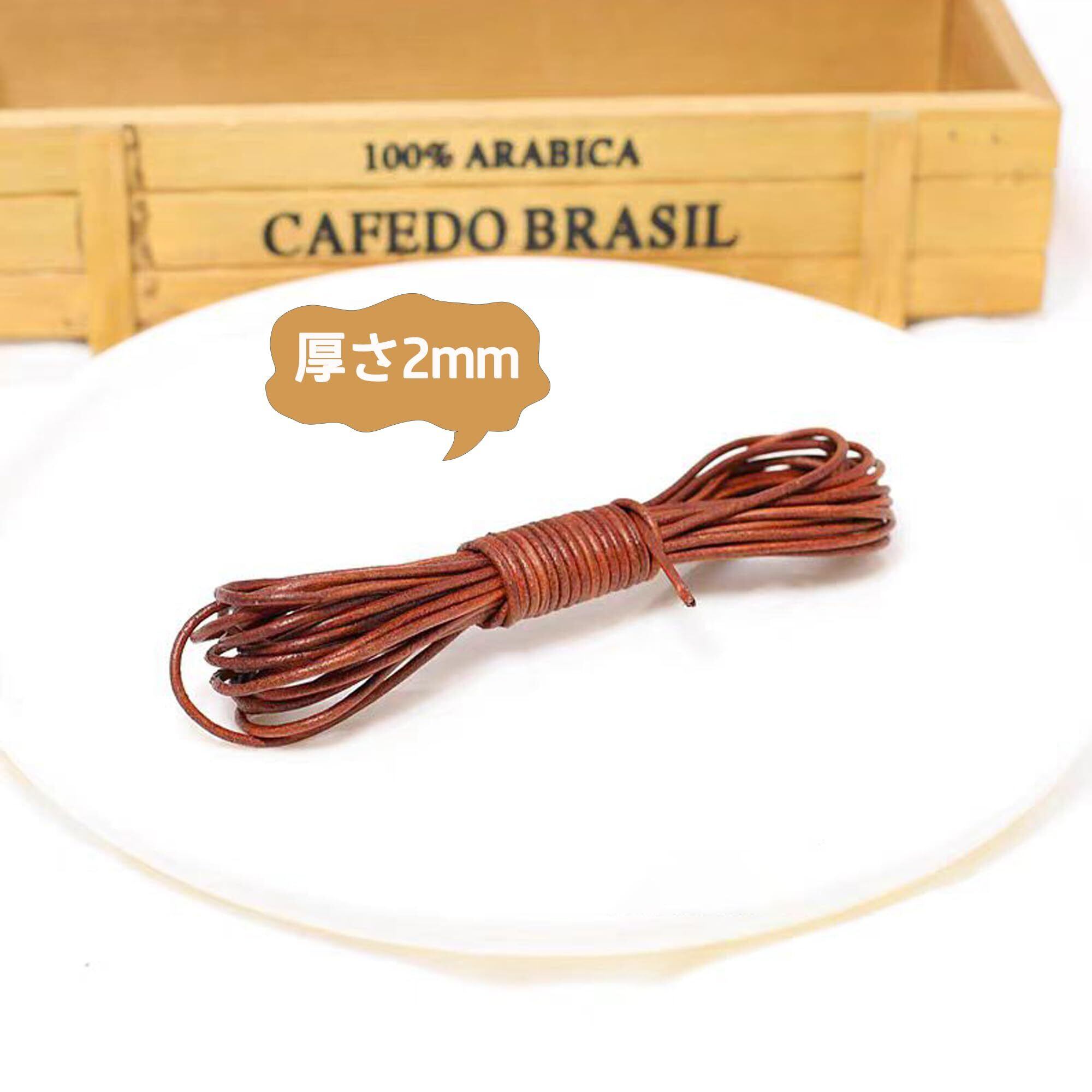 純牛皮 革紐 3mm*2m 3束入り (原色・黒・コーヒー)リアル レザー レザークラフト紐 コード 丸紐 アクセサリーパーツ 手芸材料 DIY ブレスレット・チョーカー用 ネックレス用