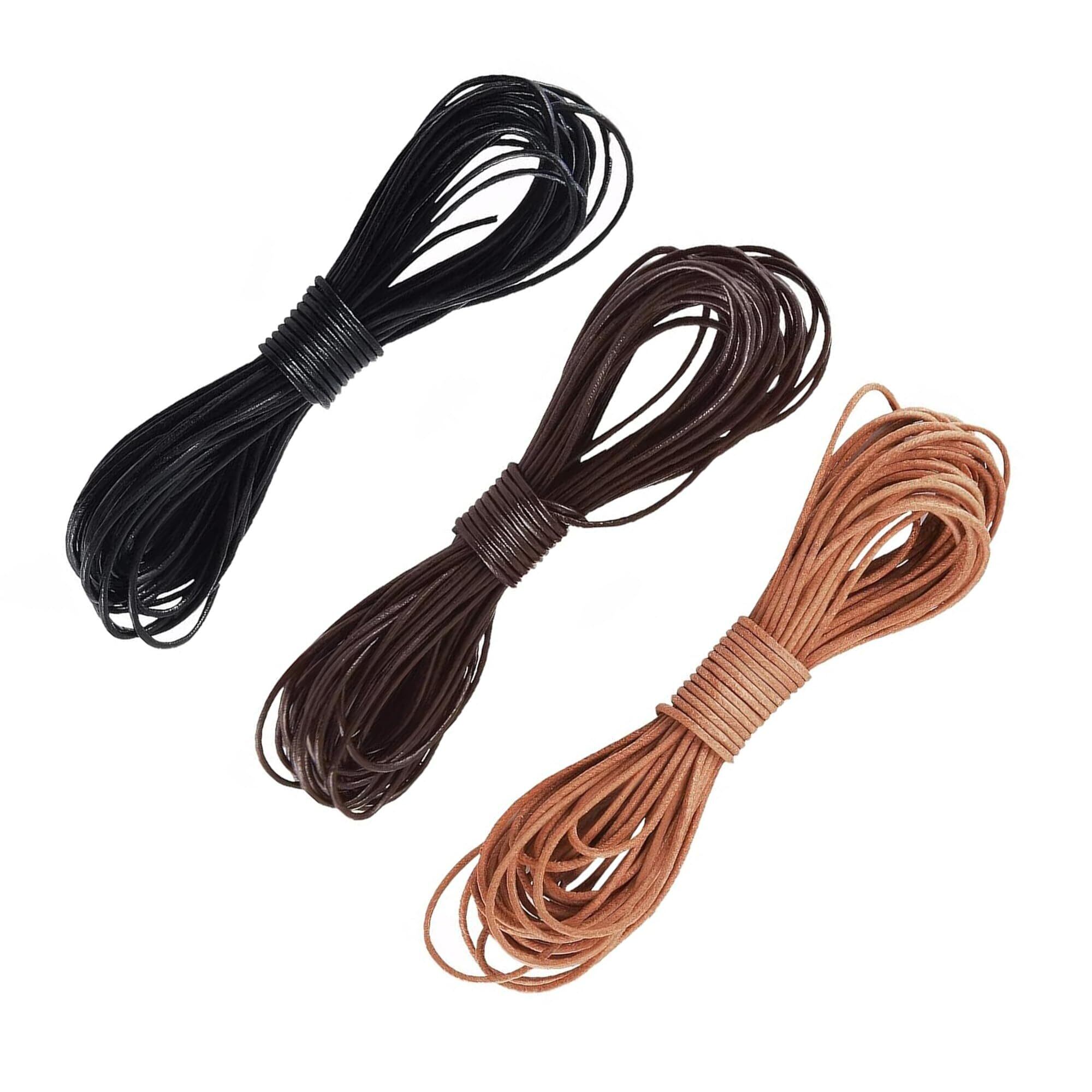 【在庫セール】純牛皮 革紐 3mm*2m 3束入り (原色・黒・コーヒー)リアル レザー レザークラフト紐 コード 丸紐 アクセサリーパーツ 手芸材料 DIY ブレスレット・チョーカー用 ネックレス用
