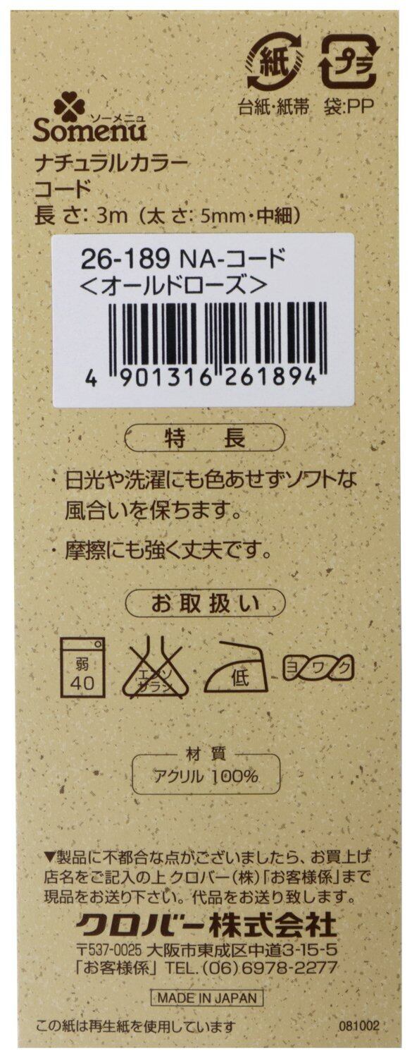 Clover ナチュラルカラー コード 3m巻 オールドローズ 26-189