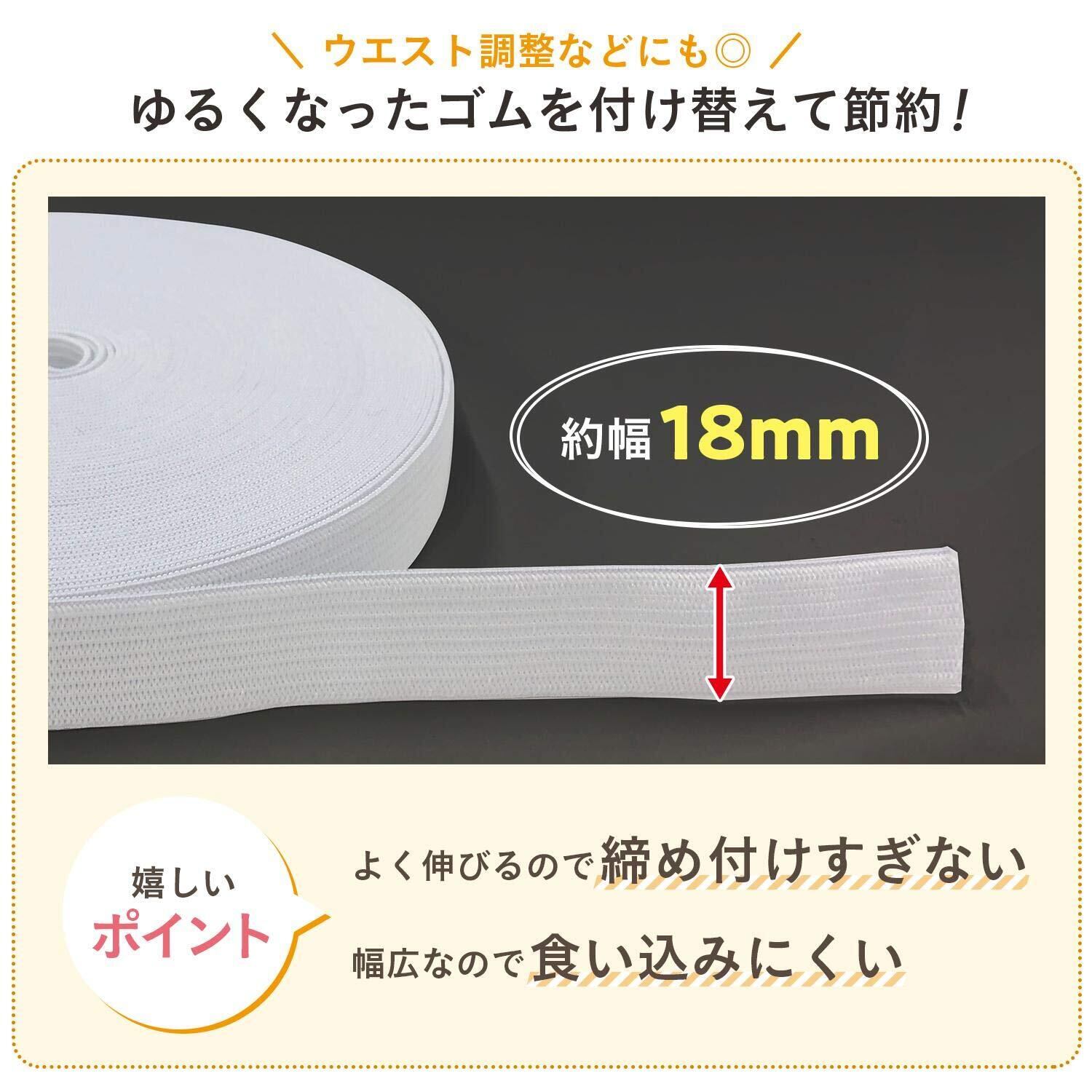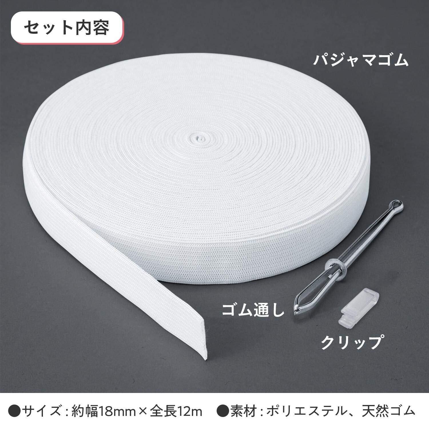 コモライフ パジャマゴム交換セット (18mm×12m) パジャマ ゴム 紐 ゴム通し 平ゴム ウエスト ズボン 手芸