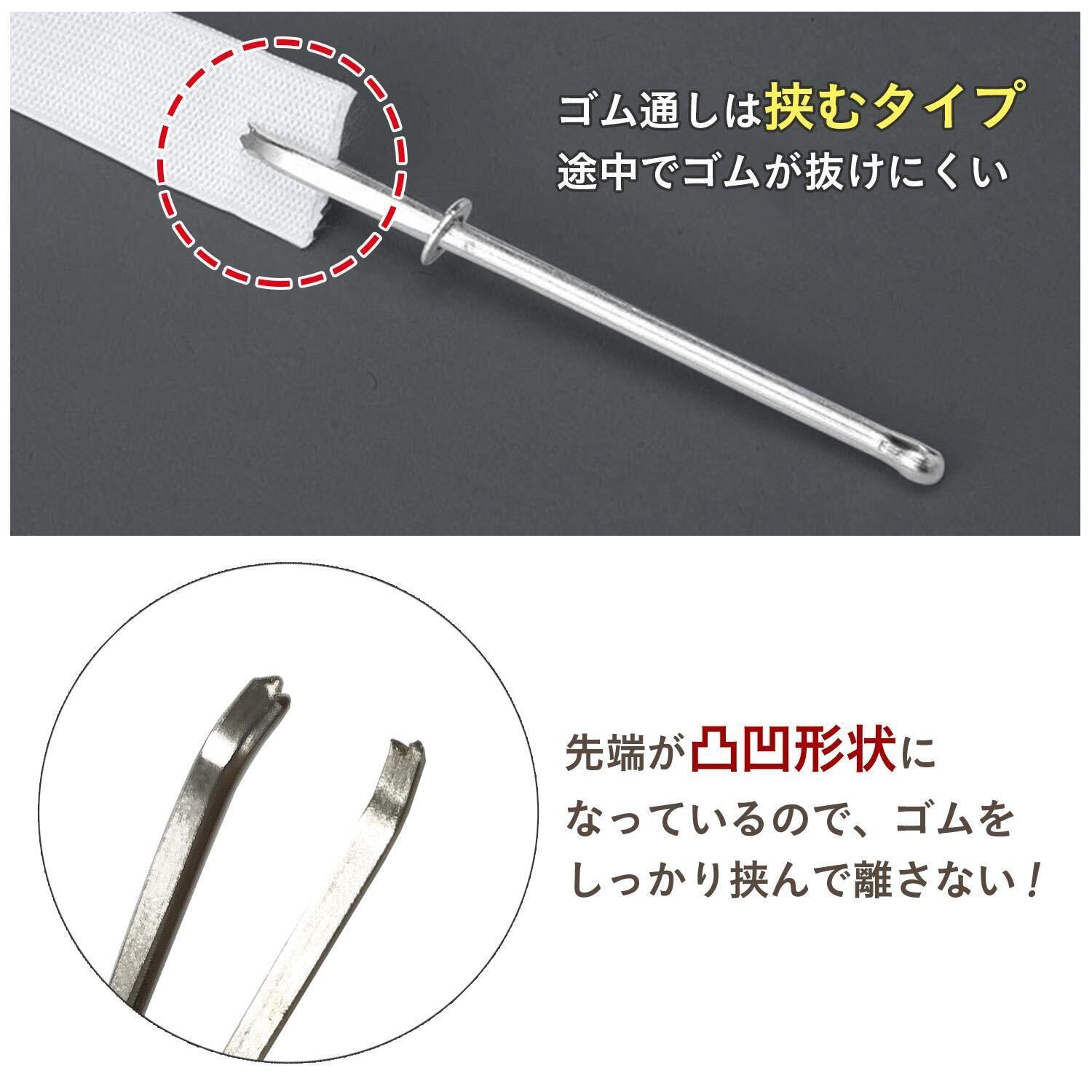 付属のゴム通しは、先端が凸凹形状になっているので、ゴムをしっかり挟んで離さない