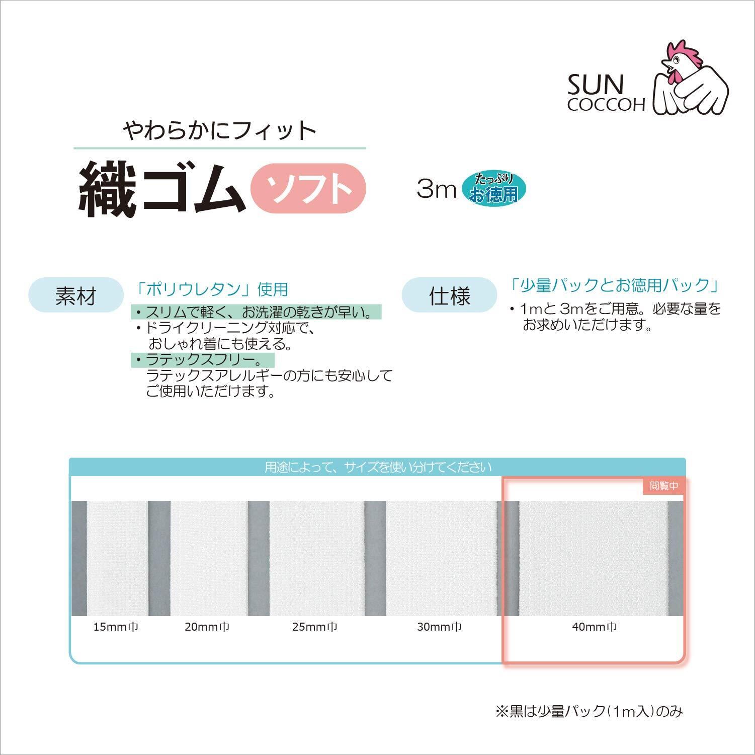 KIYOHARA サンコッコー 織ゴムソフト 3m 40mm巾 白 SUN41-82