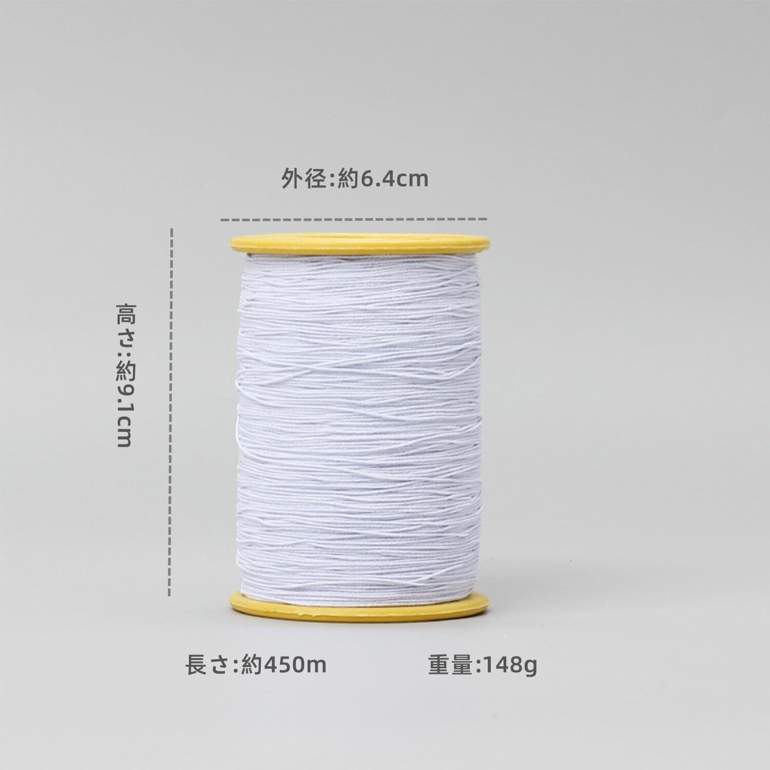 【2022最新】Windman ゴム糸 ミシン ゴム糸 細 0.5mm ゴムカタン糸 手縫い ゴムひも 丸ゴム たっぷり450m巻 手芸ゴム 裁縫 (白)
