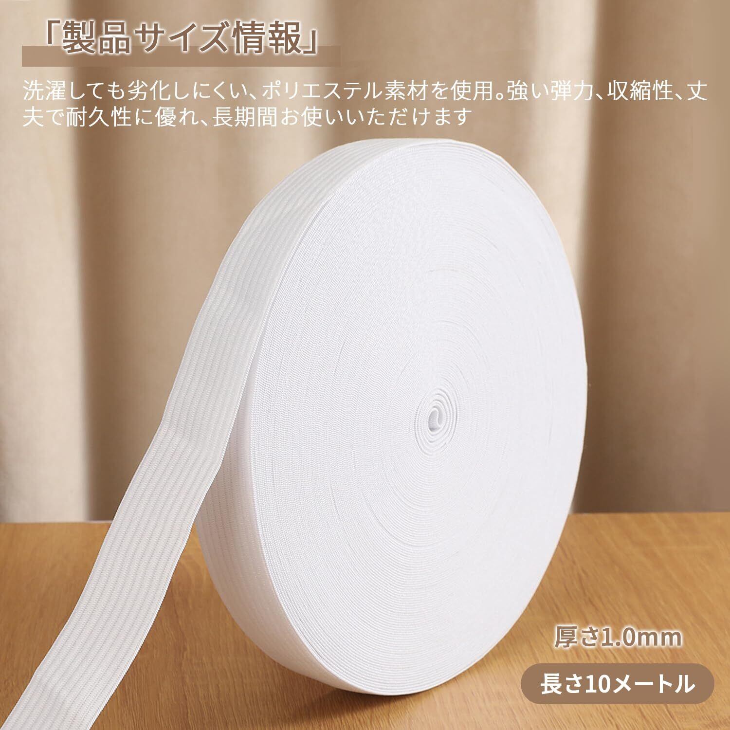 平ゴム 弾性ゴム 4仕様 ホワイト/ブラック 2色 裁縫用高弾性バンド ズボンリペア用 手芸裁縫 DIYプロ仕様 (20mm幅×10m ブラック)