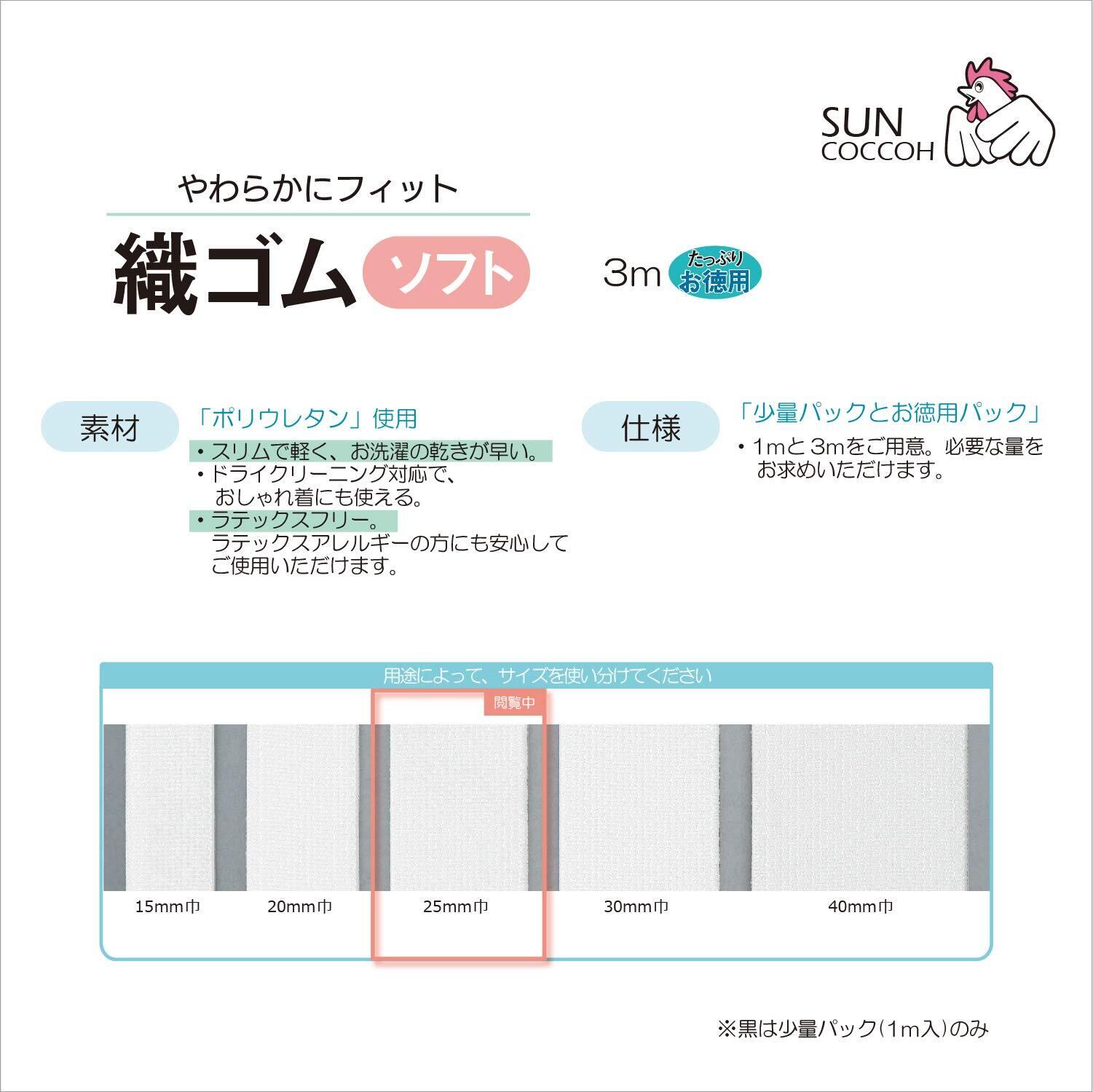 KIYOHARA サンコッコー 織ゴムソフト 3m 25mm巾 白 SUN41-29