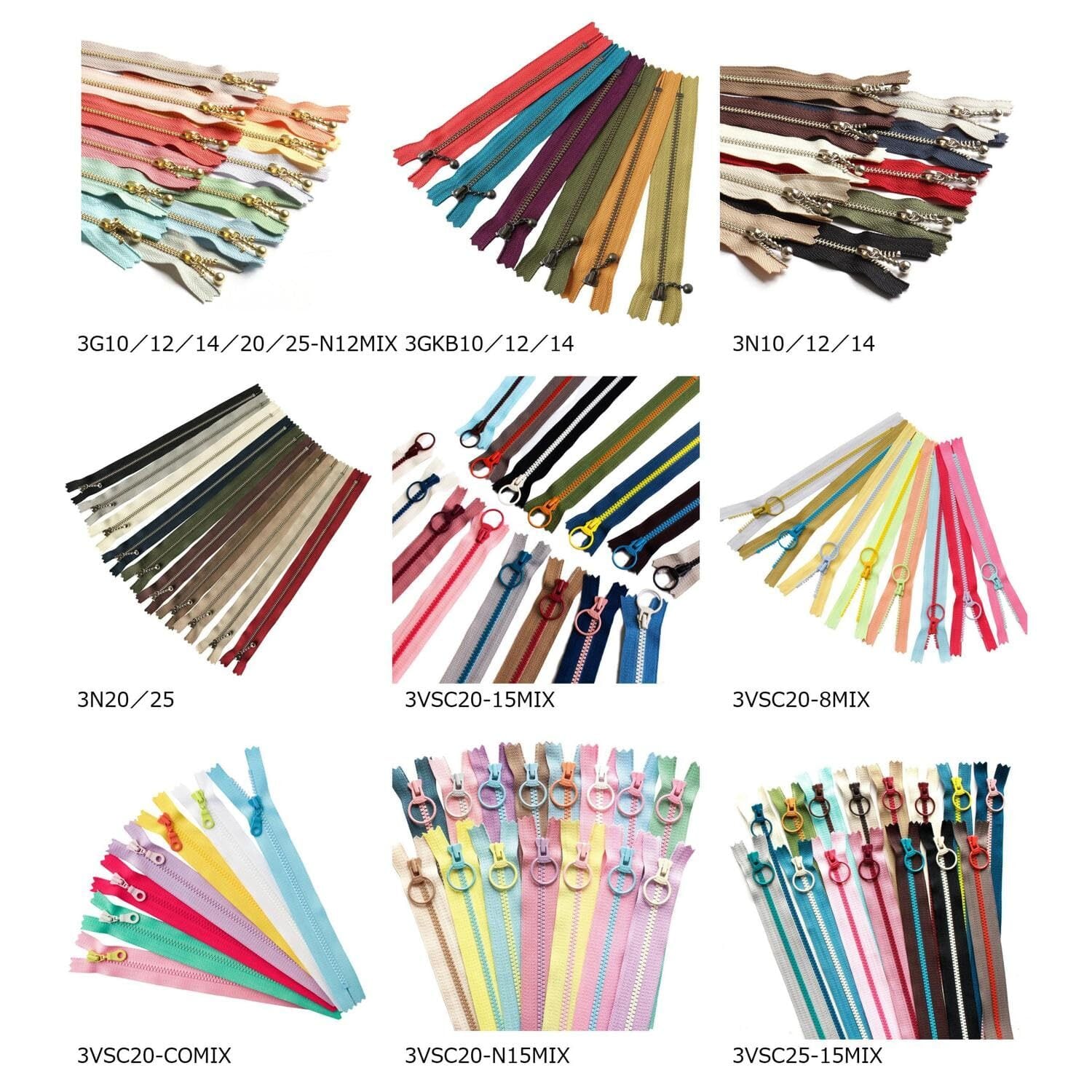 Y.K.K 玉付きファスナー ニュアンスカラー12色セット 12cm ゴールド 3G12-N12MIX
