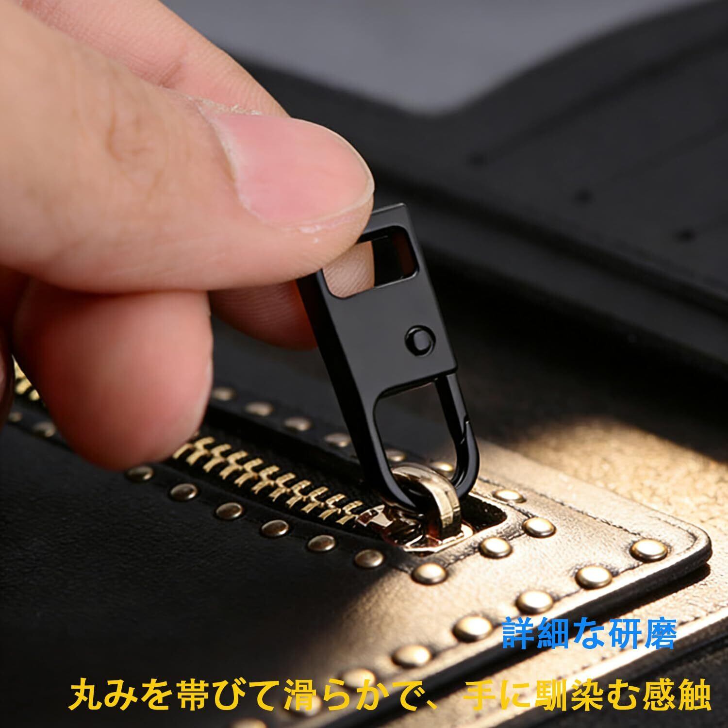 【高級感ある合金製,耐久性に優れた】高強度合金素材を採用したこのファスナー取っ手!滑らかな手触りと高級感あふれる外観を兼ね備え、耐久性に優れて頻繁な開閉にも確実に耐え、破損の心配はない。シンプルで洗練されたデザインは、ブランドバッグや革製品に取り付けても完全に違和感なく、まるで元から付いていたかのように自然に溶け込みます。