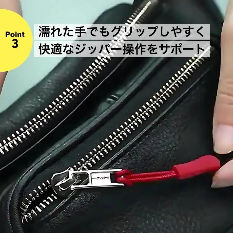 【滑り止め加工で握りやすい】表面はザラザラした滑り止め加工で、しっかりつかめて快適なジッパー操作をサポートします。
