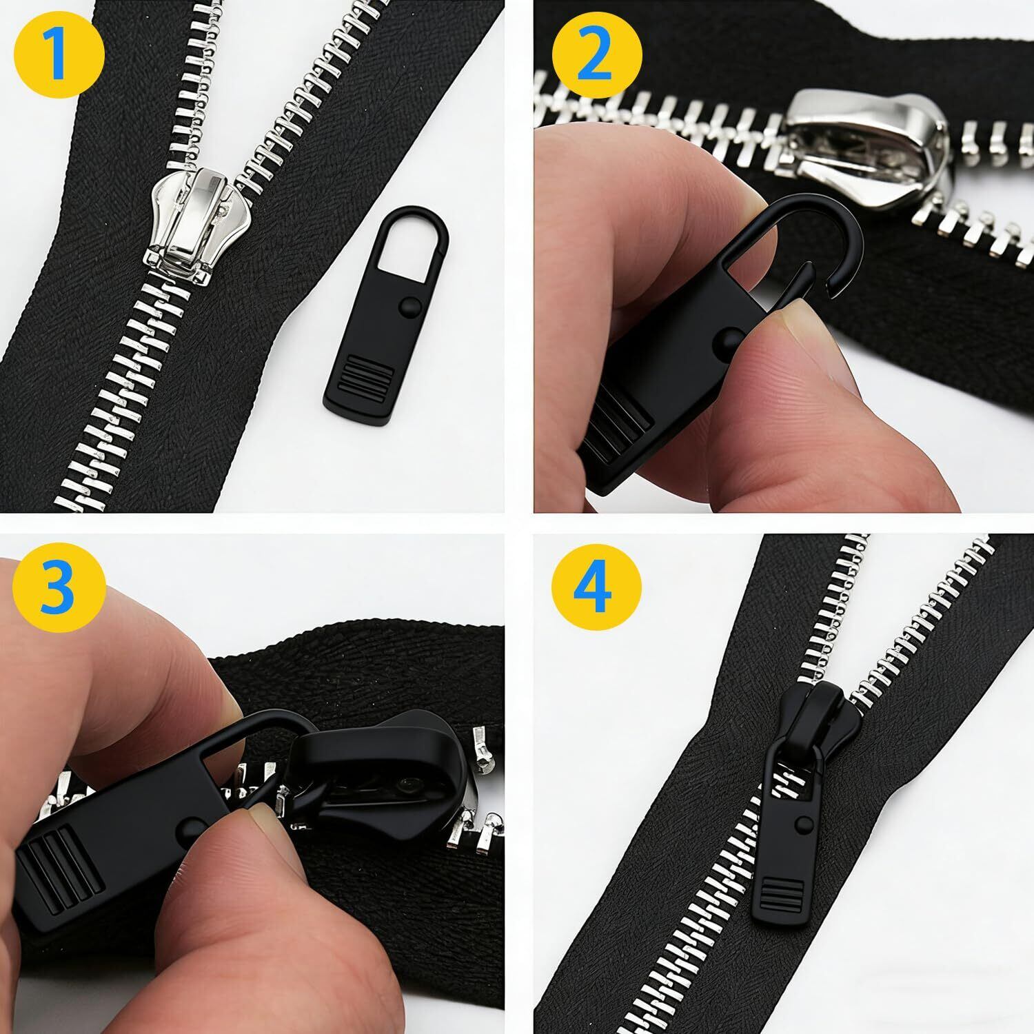 【工具なしで、簡単取り付け!】壊れたジッパーの引き手、押し込むだけで簡単交換!修理屋さんに行かなくても、自分で数分で直せる超便利パーツだ。
