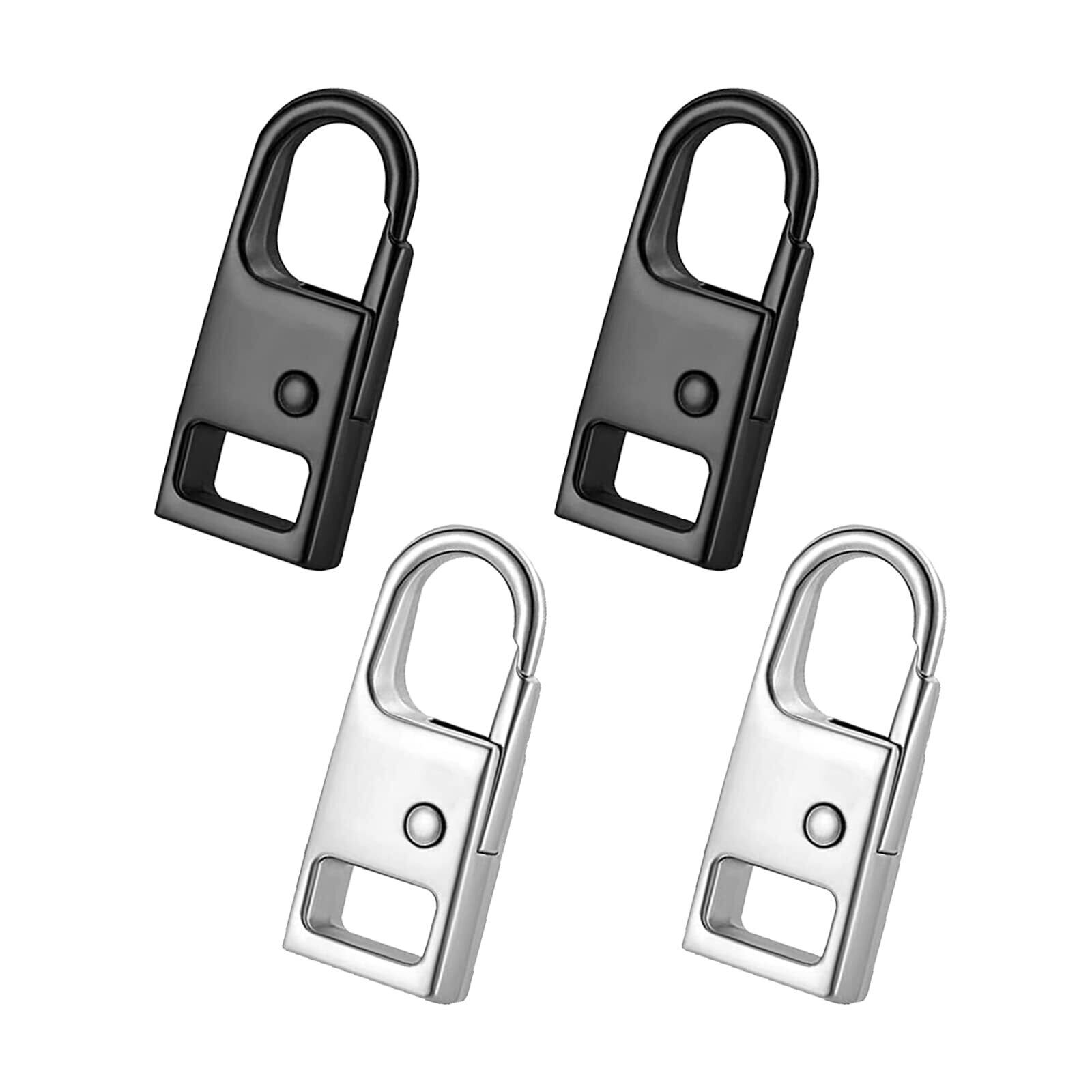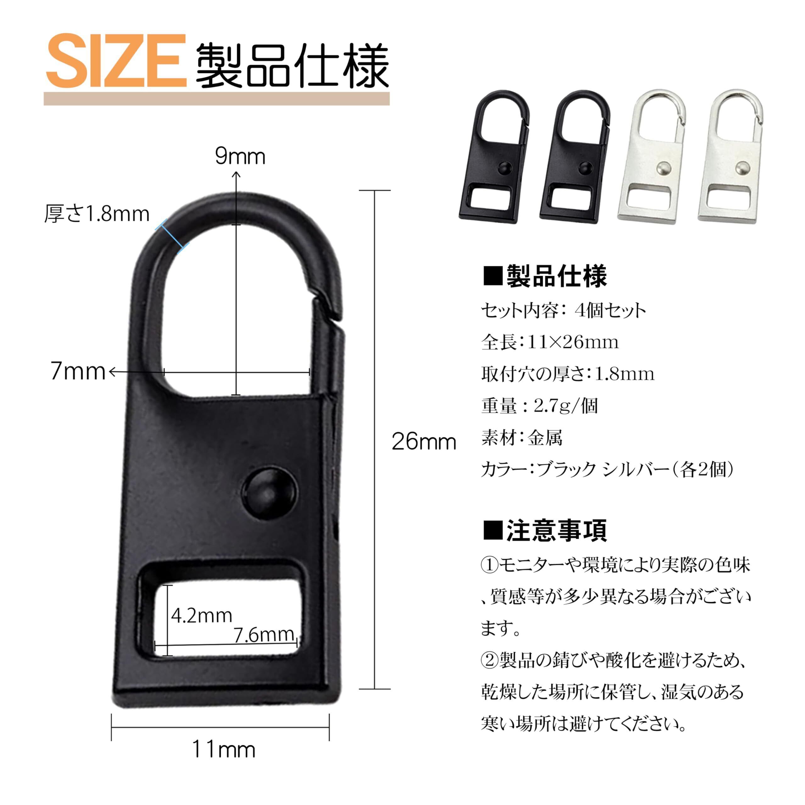 ファスナー 引き手 交換用 ジッパー ジッパー パーツ ファスナー 修理キット ファスナー 持ち手 交換 ファスナー引き手パーツ (黒+銀)