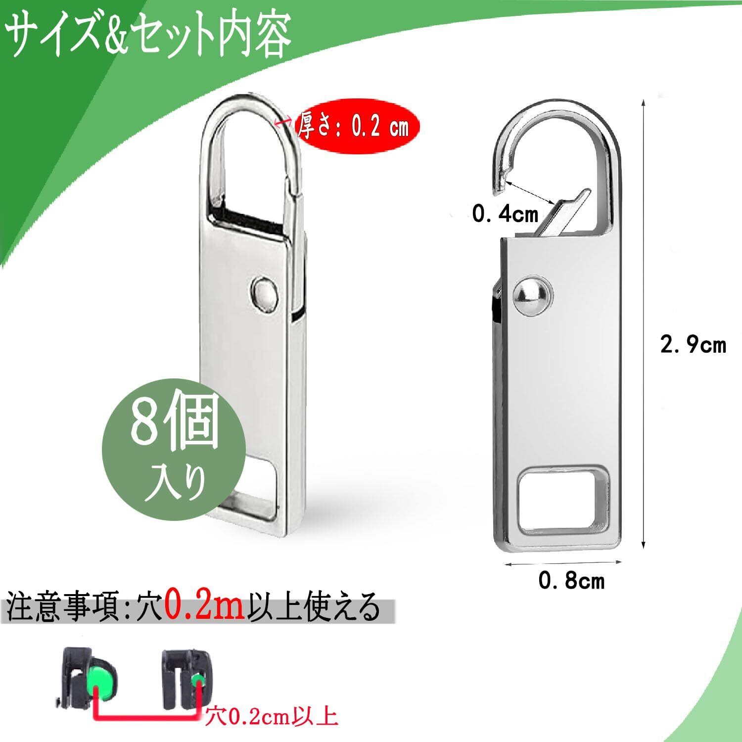 【小さいファスナー 引き手,色んなシーンに活躍】シンプルな金属製ジッパー、市販のファスナースライダーにほとんど対応(掛け部分の隙間:2mm以上)。鞄、スーツケース、服、靴、バグ、テント、布団カバーなどに適用。日常生活品で、8個を事前に準備して使いたい時が取り出して使い、便利です。友達や家族にプレゼントとして送っても大丈夫です。