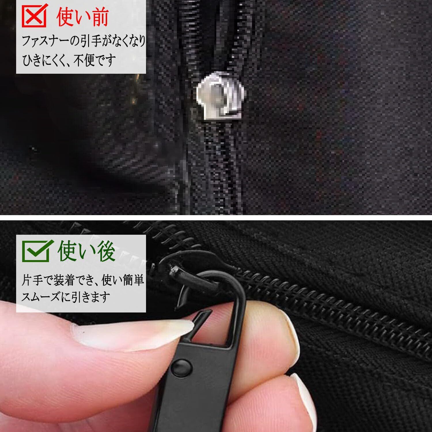 【工具や裁縫不要、取り付け簡単】ファスナーの引手が壊れ、工具もなく、修理できない、どうしよう。このファスナー引き手が取り外しタイプで、全ての問題を解決かも。特別デザインでファスナーの引手が壊れても、工具なしで自分が片手でワンタッチで付けれ、順調でしたら、1分間も不要です。ファスナー引き手の交換を簡単に操作できるので、修理屋さんに行かなくても、大丈夫です。注意:ファスナースライダーの掛け部分の隙間が2mm以上でなければなりません。