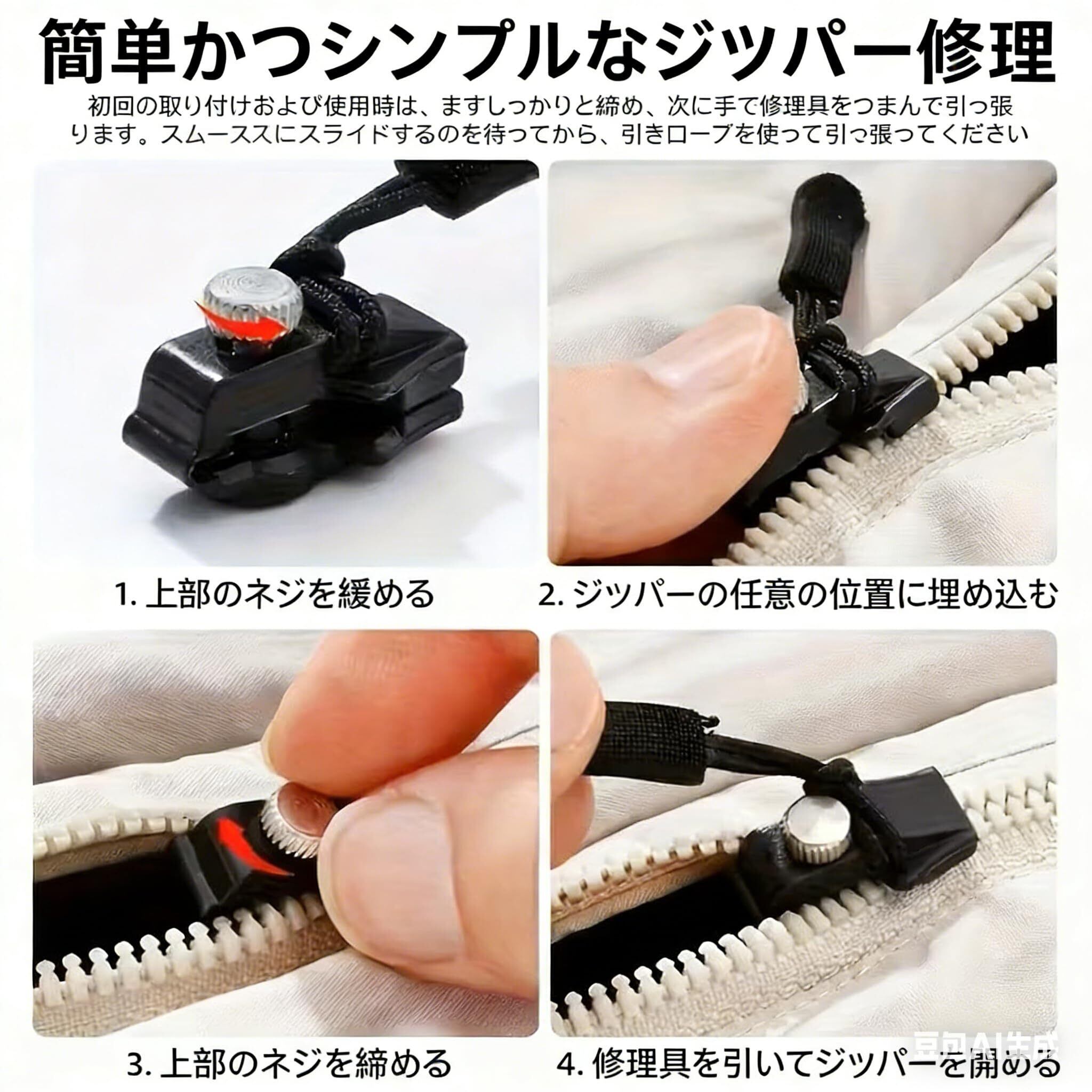 丁寧な作りが耐久性を確保: 精密に設計されたこのファスナー修理キットは、ハンドバッグ、ブーツ、ジムバッグなどの日常品のファスナーメンテナンスを簡素化します。最小限の手間で長持ちする解決策を提供し、持続的な使用を可能にします。