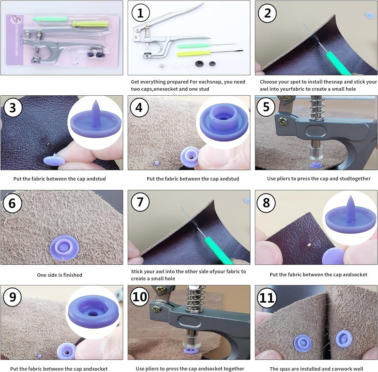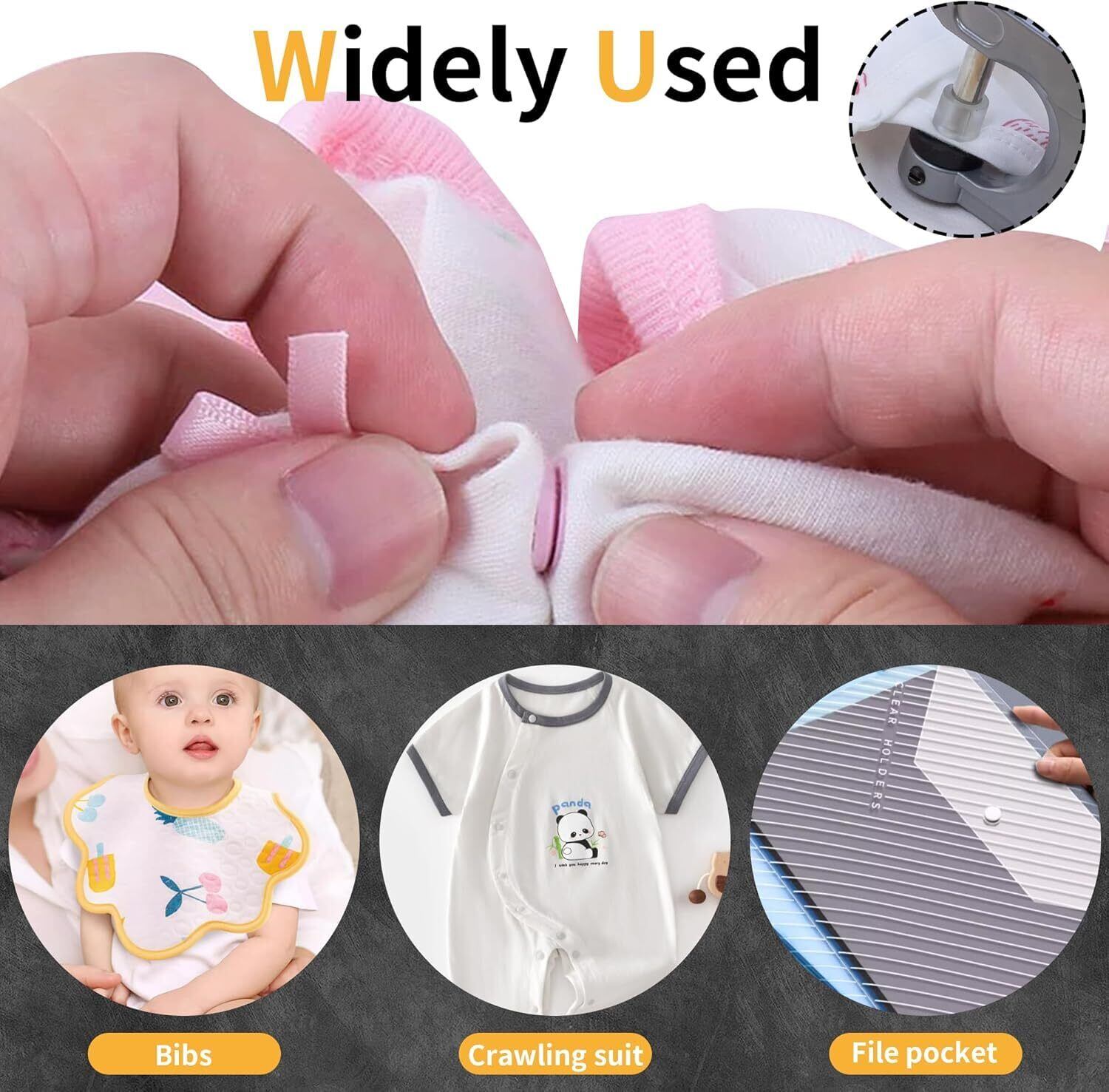 【幅広い用途】このプラスナップは対応可能なボタンサイズはT3とT5とT8、3種類があります。スナップ専用のハンディブレス機械ですので、ベビー服、キッズのお洋服、介護ウエア、レインコートやアウトドア用品、寝具など様々なシーンで使用できます。ご注意:ハンドプレスプライヤーは、金属製のスナップボタンには使用できません。樹脂製のスナップボタンにのみ使用できます。