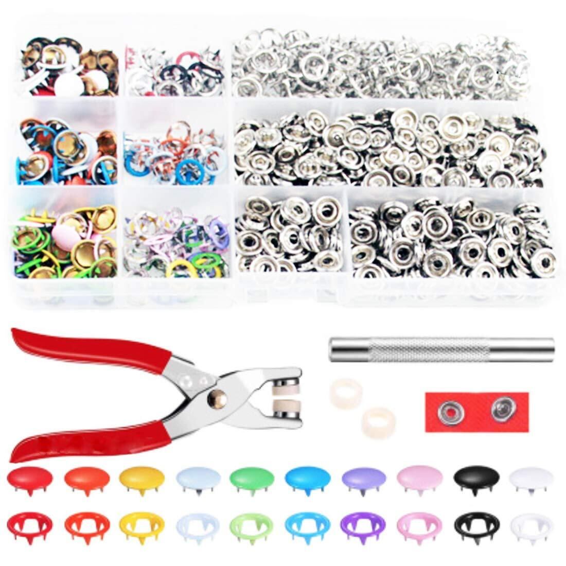 【特価セール】A'sTool スナップボタン 金属製 丸型 アメリカンホック ボタン 9.5mm 10色 200個 プライヤー付き 打ち具 セット 洋裁 DIY