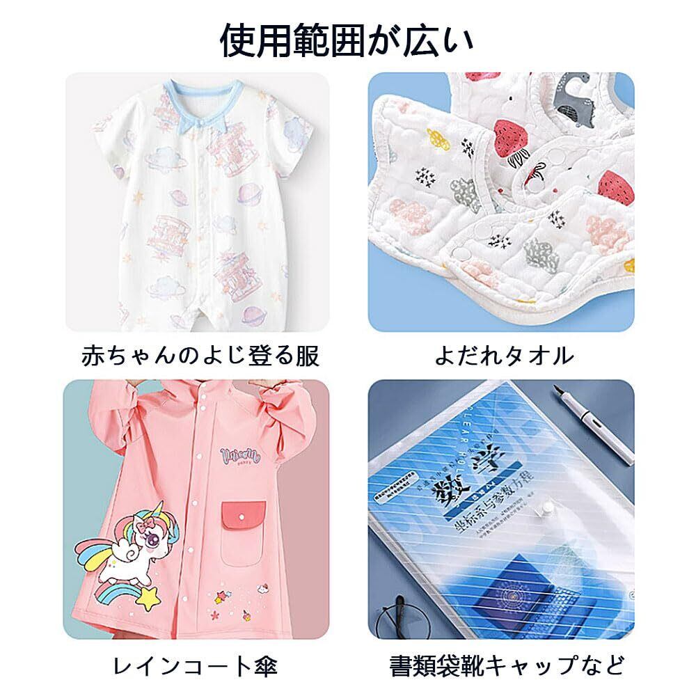 適用範囲:ベビー服、子供服はもちろん、介護服、レインコート、アウトドア用品、寝具など様々なシーンで大活躍