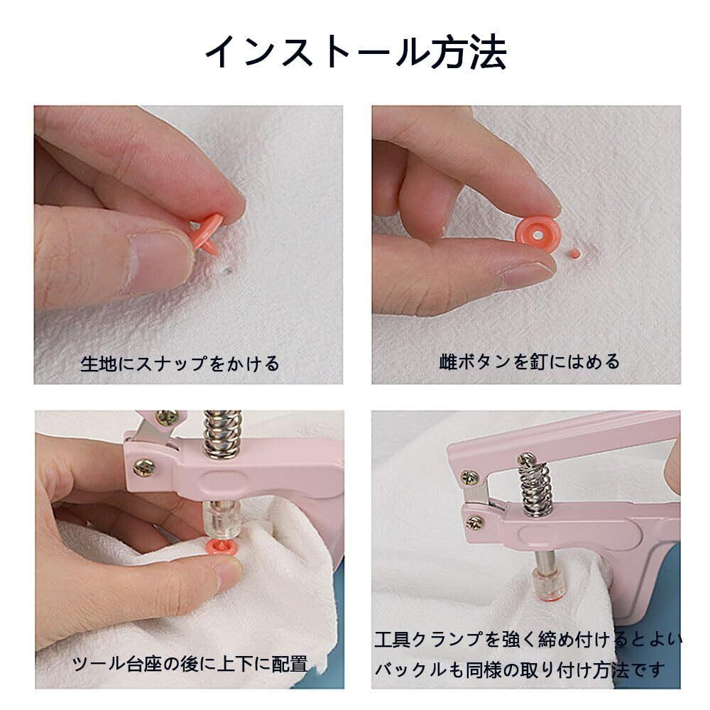 使いやすい:取り付けたい位置にスナップボタンを設置し、専用ハンドプレスでかしめるだけで取り付けが完了
