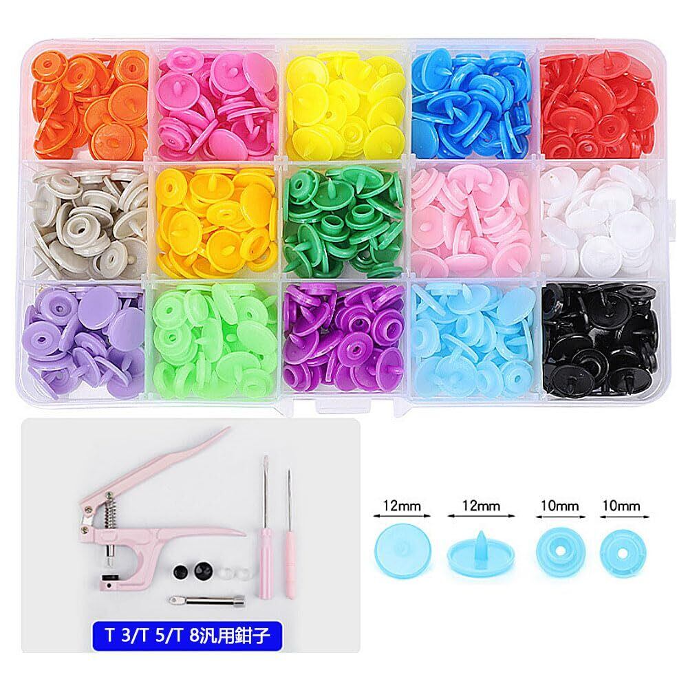包装内容:ハンドプレス1個、プラスチック捕捉120セット、12 mmカラフルセット:全15色