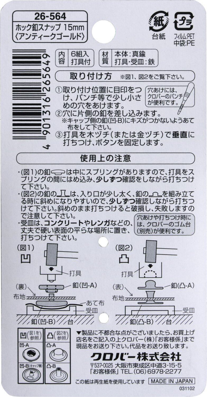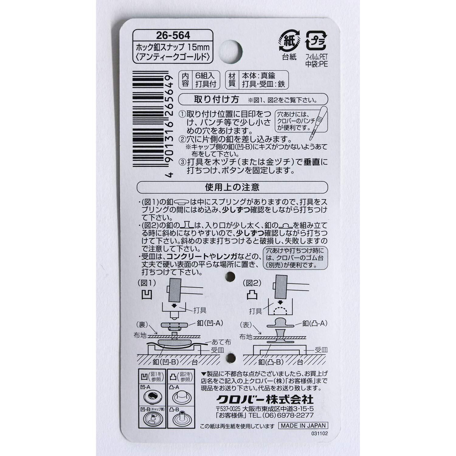 【数量限定】Clover ホック釦スナップ アンティークゴールド 26-564