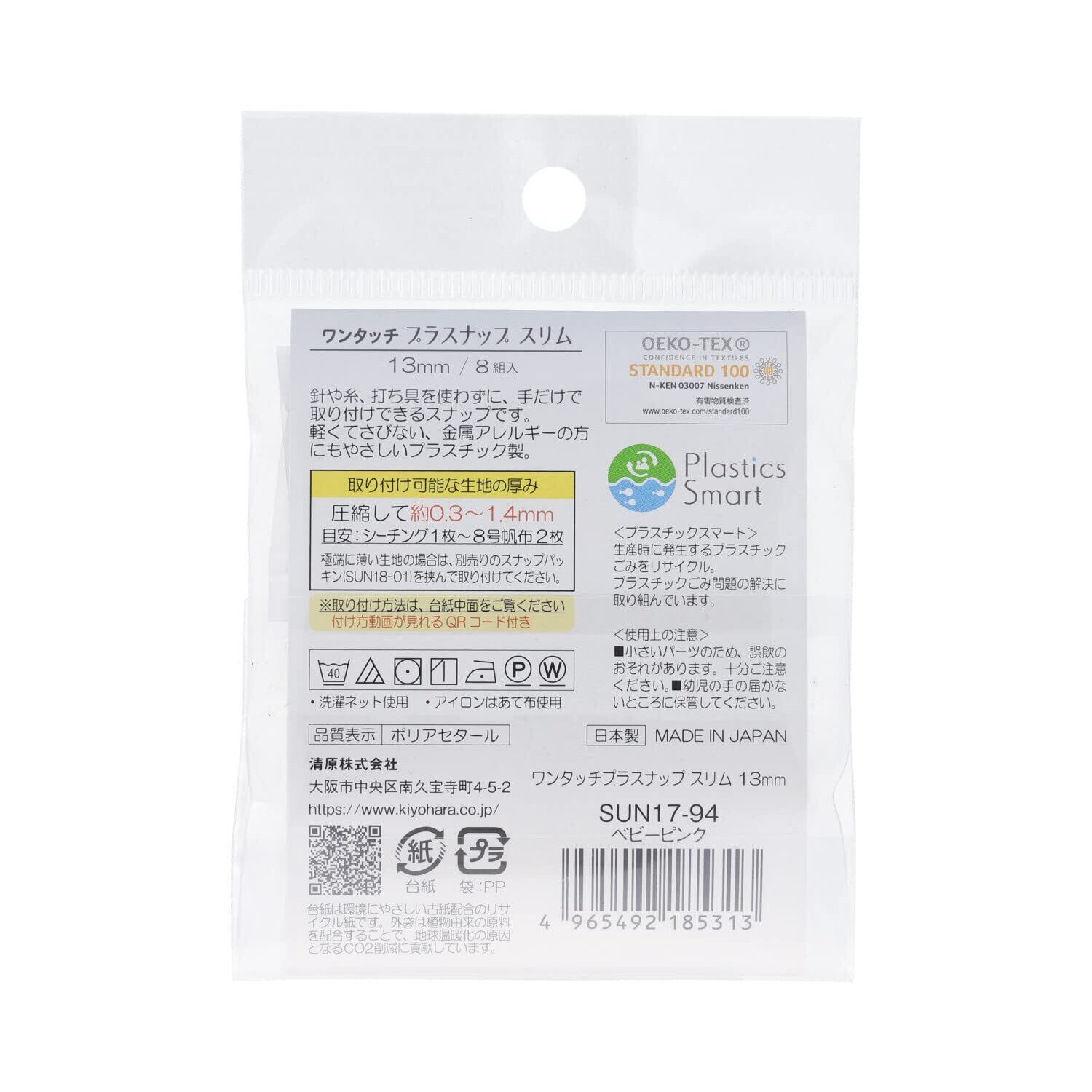 KIYOHARA サンコッコー ワンタッチプラスナップ スリム 8組入 直径13mm ベビーピンク SUN17-94