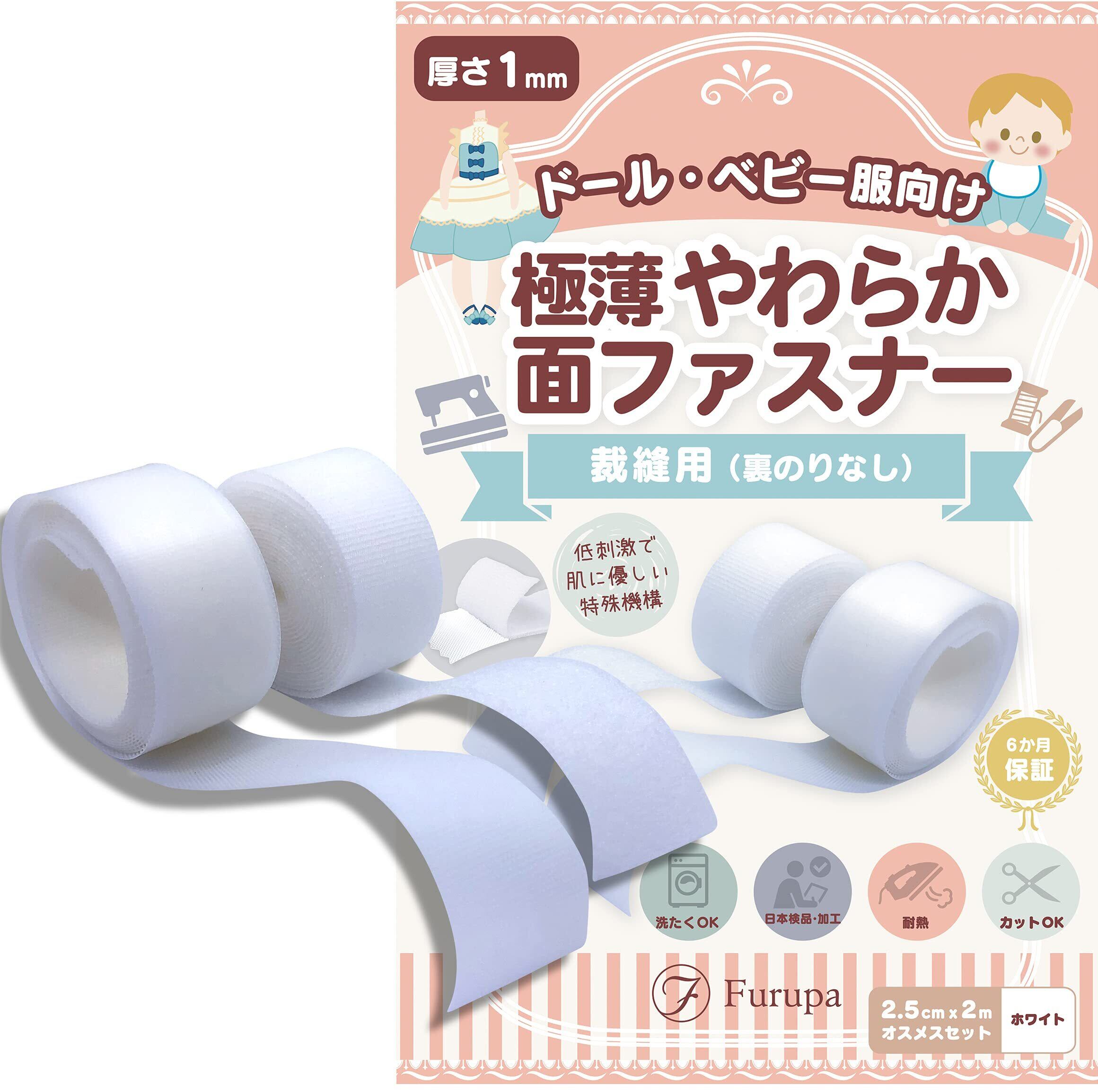 【2022最新】フルパ 極薄やわらか面ファスナー 厚さ1mm 手芸 ドール ベビー服 メカニカルファスナー 低刺激 裏のりなし 手縫い・ミシン用(幅2.5cm×長さ2m 白)