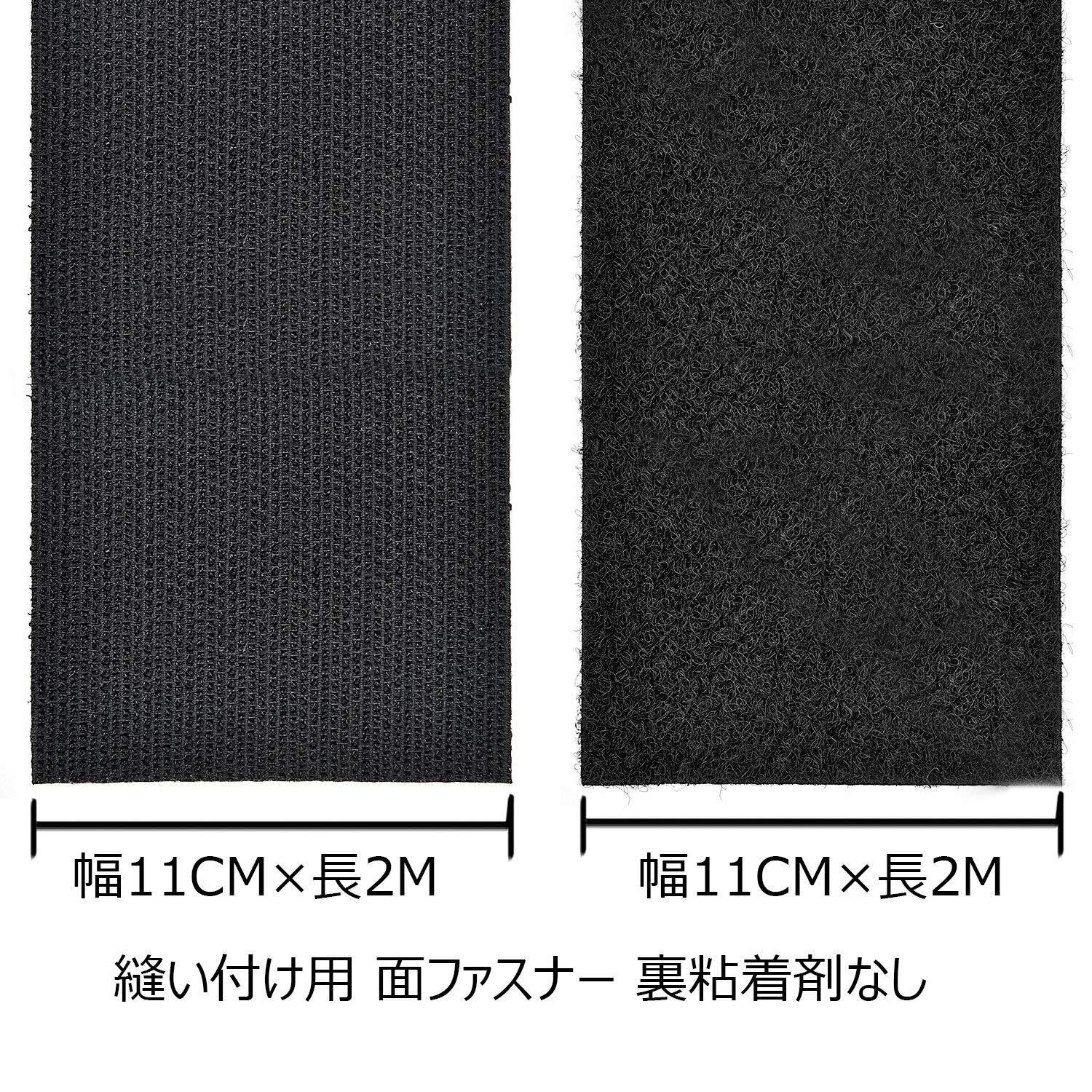 RunsDeep 幅11CM×長2M 超便利 超強力 面ファスナー 黒 ブラック フックループ オスメスセット 縫製タイプ 裏粘着剤なし 縫い付け用