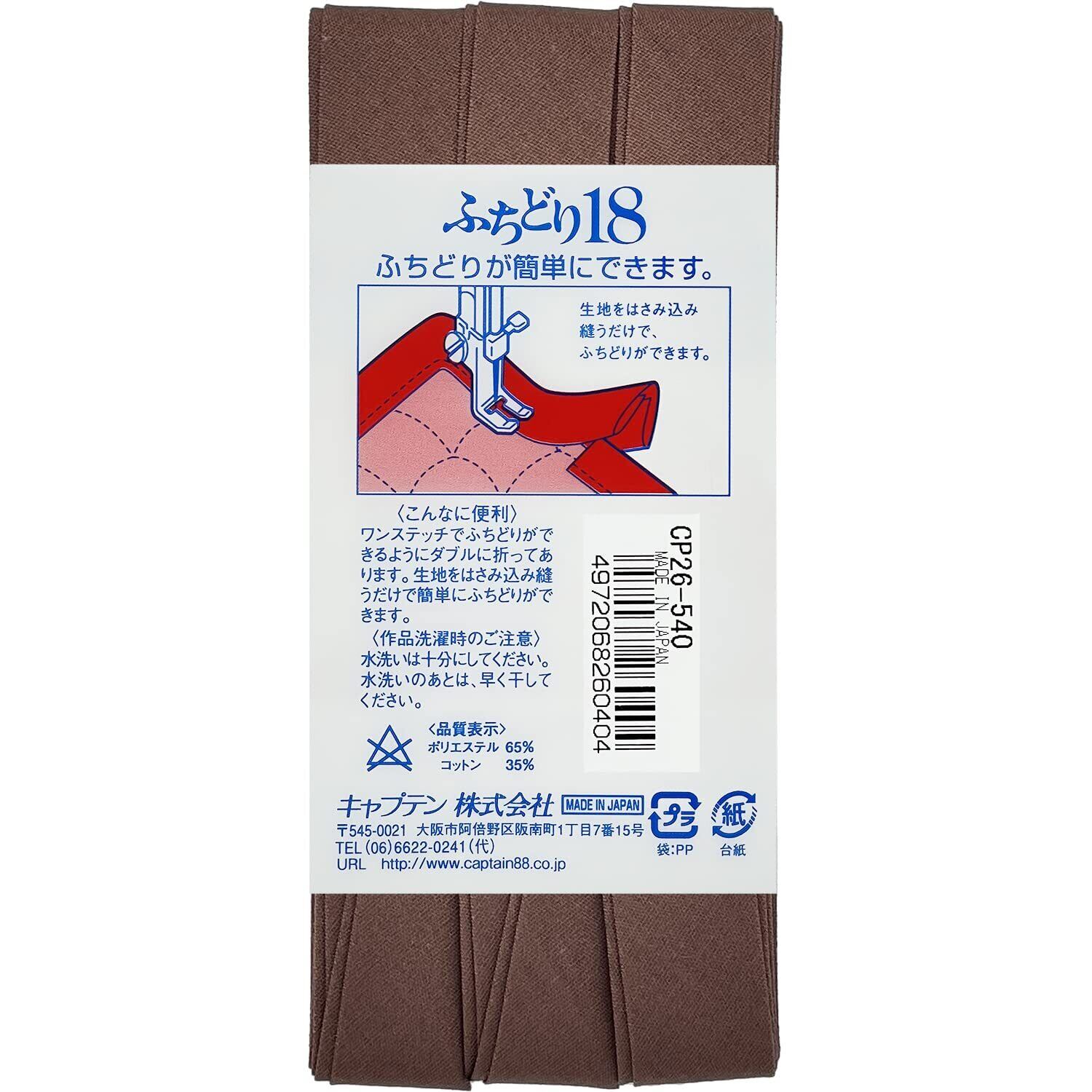【在庫セール】CAPTAIN88 キャプテン ふちどり 18 バイアステープ 18mm幅×3m巻 #540 茶系 CP26