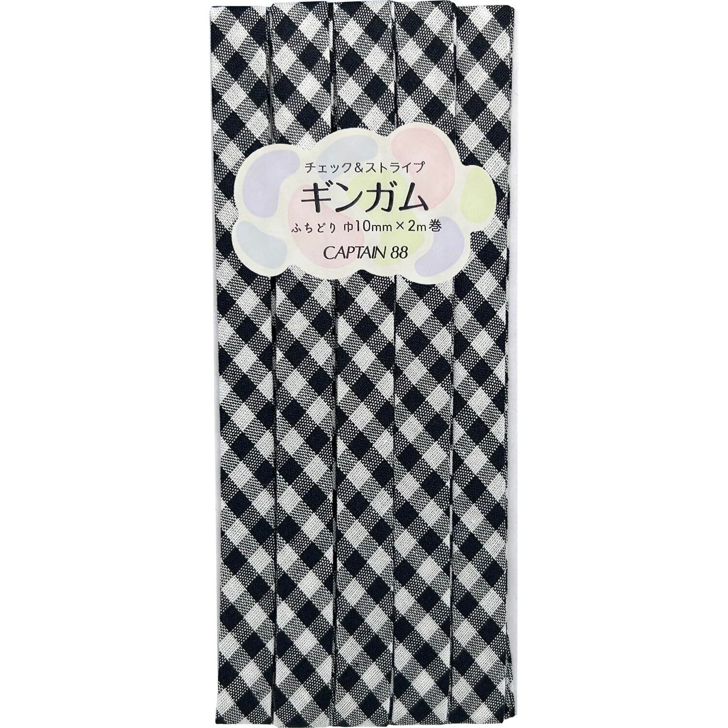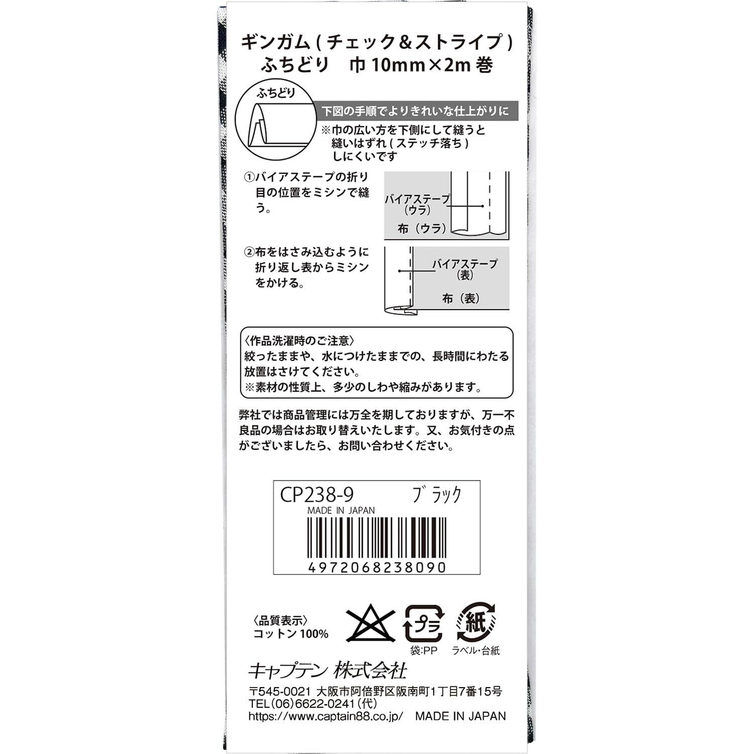 【2022最新】CAPTAIN88 キャプテン ギンガム チェック&ストライプ ふちどり バイアステープ 巾10mm×2m巻 #9 ブラック CP238