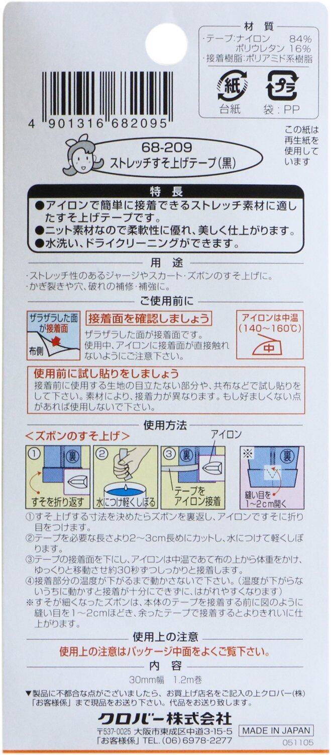 クロバー(Clover) ストレッチすそ上げテープ 黒 68-209