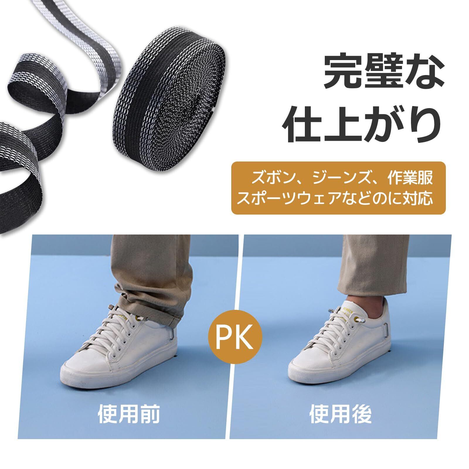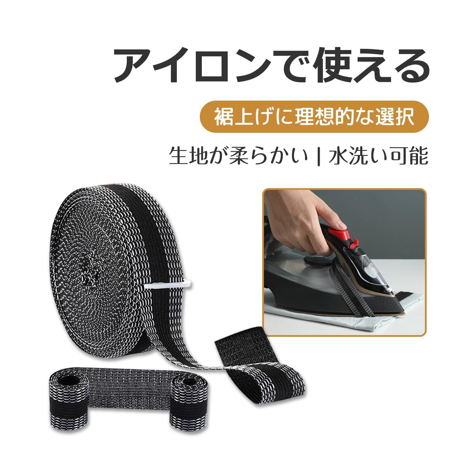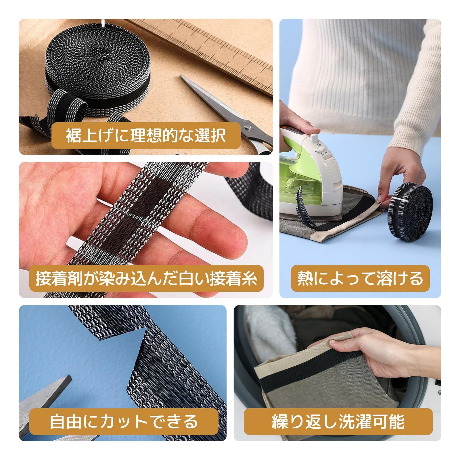 【裾上げにぴったり】裾上げテープは幅が25mm、長さが11mという大容量のサイズがあるため、何度も使うことができます。お宅に置いておくことで、いつでもサイズが合わない衣類に使えます。特に黒い仕様は、多くのズボン、ジーンズ、作業服、スポーツウェアなどのに溶け込んで目立たないため、裾上げに理想的な選択です。