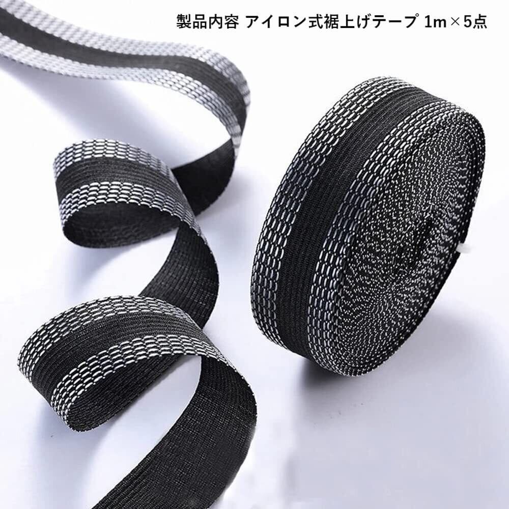 【2022最新】オーディオファン 裾上げテープ アイロン接着 かんたん お手軽 すそ上げ ブラック 1m × 5点セット