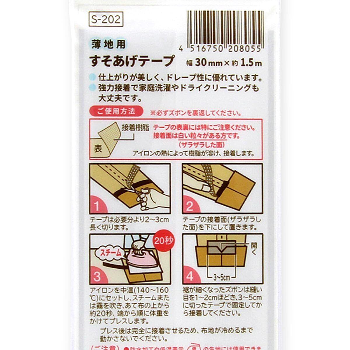 サイズ: 幅30mm、長さ1.5mのテープで、スラックスやスカートに最適です。