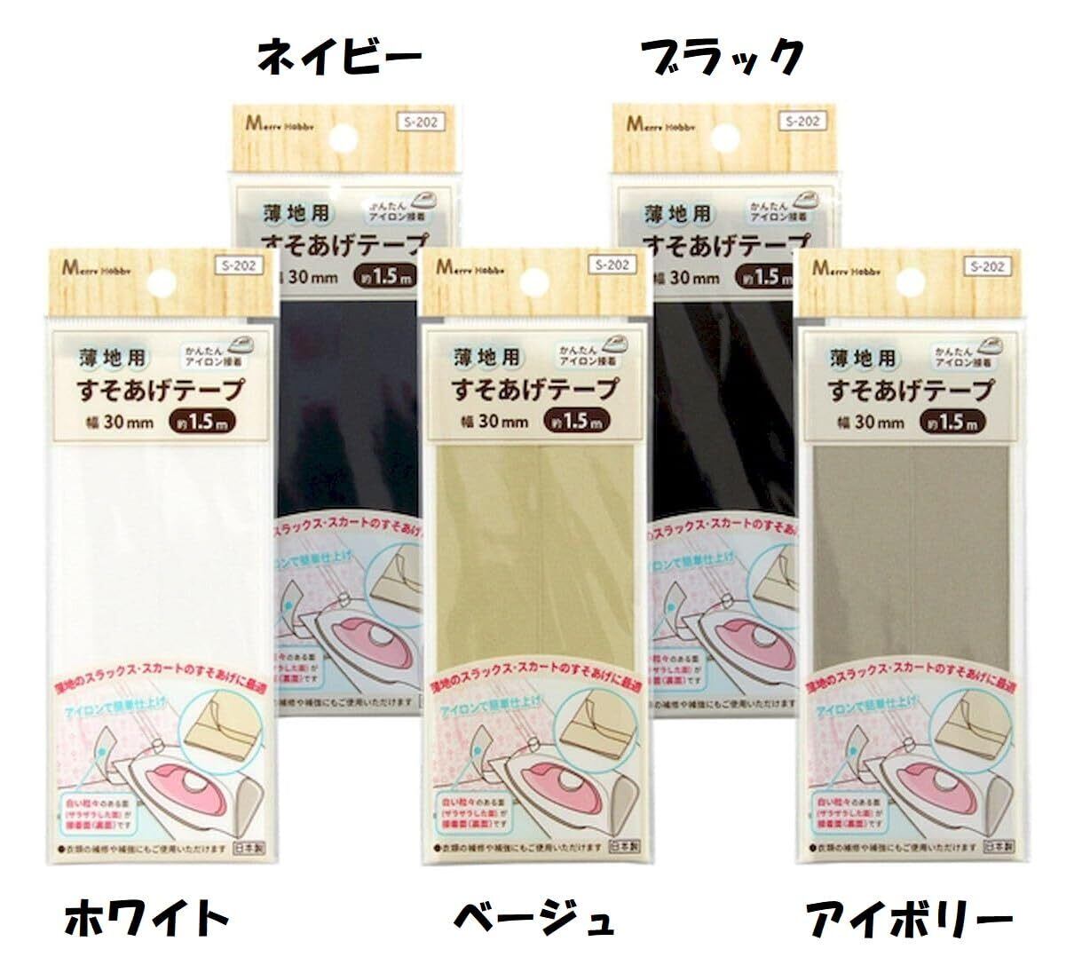 日本製 アイロンで簡単仕上げ 洗濯OK 薄地用すそあげテープ 5色 (ブラック ネイビー ブラウン ベージュ ホワイト) 30mm×1.5m 1枚入り (ネイビー)