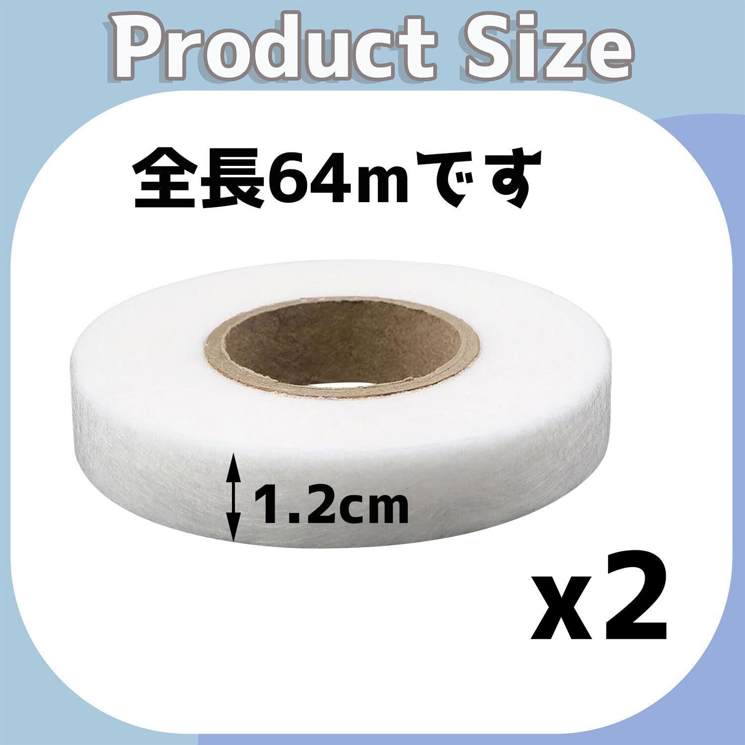 アイロン接着テープ 幅1.2cm×全長64m 2個入り 裾上げテープ アイロンテープ 洗濯可能 布用 衣装製作 補修 DIY 手芸用品 簡単裁縫道具不要 (ホワイト)
