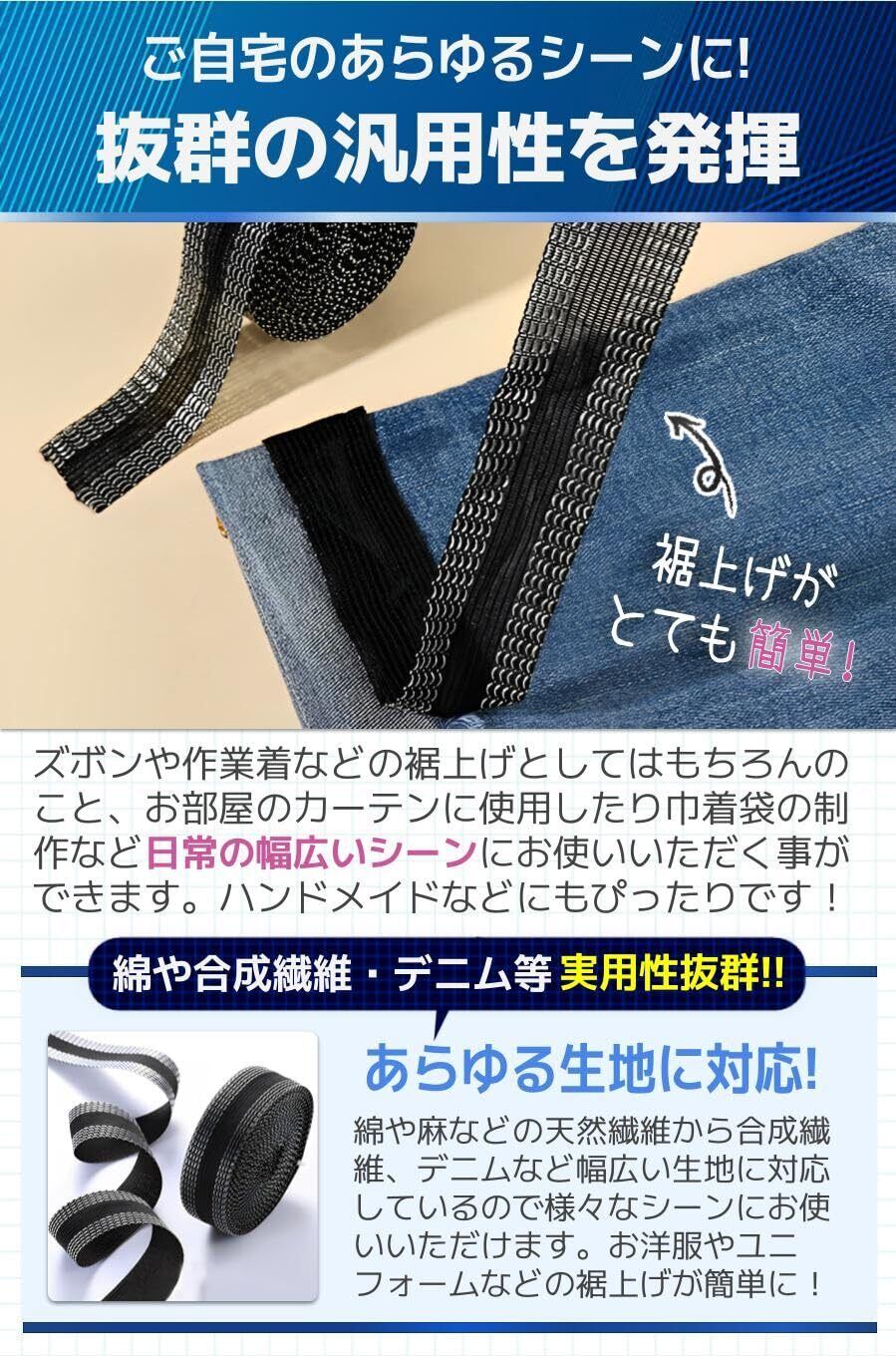 【抜群の汎用性を発揮】ズボンや作業着などの裾上げとしてはもちろんのこと、お部屋のカーテンに使用したり巾着袋の制作など日常の幅広いシーンにお使いいただく事ができます。ハンドメイドなどにもぴったりです!