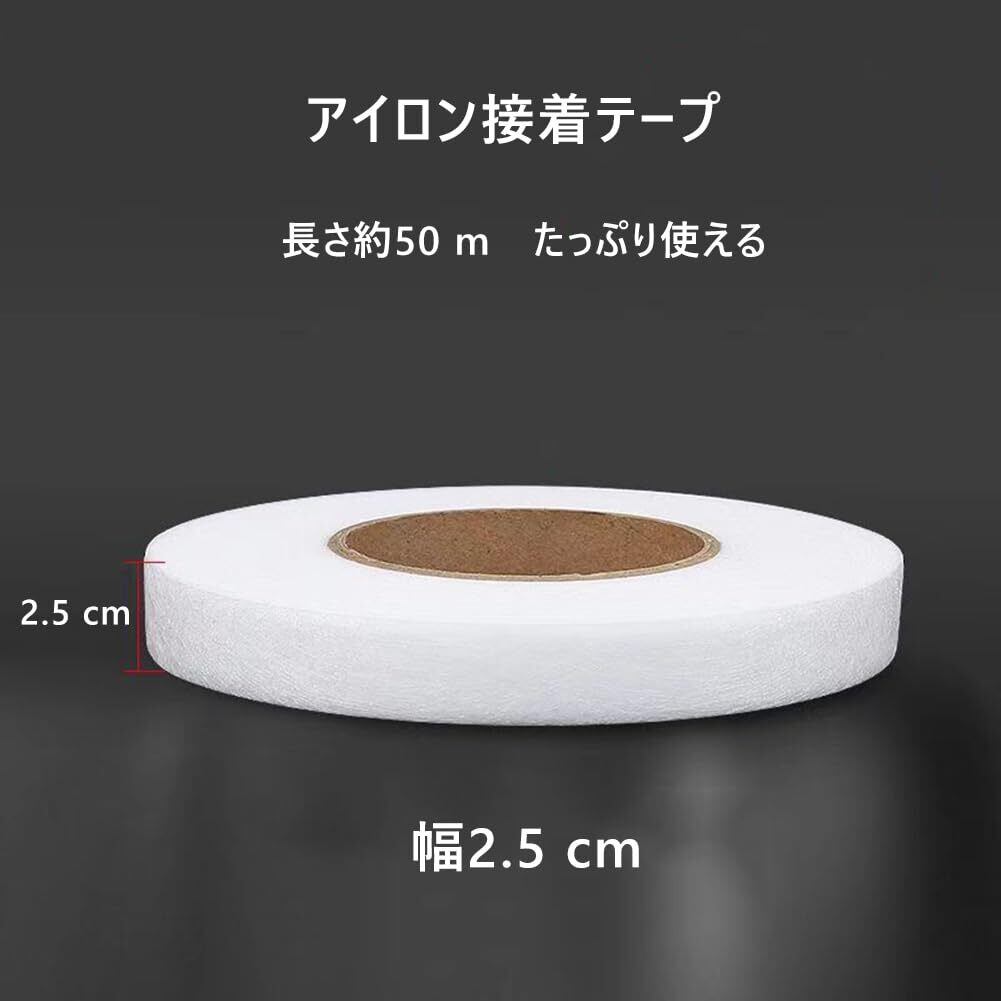 接着芯テープ アイロン接着テープ 白 幅25 mm 50 m 巻 両面 接着 薄地 布用 熱接着 裾上げ テープ アイロンテープ 布 接着剤 すそ上げテープ 洗濯可能 針・糸・裁縫道具不要 カーテン ズボン 衣服 衣装製作 補修 DIY 手芸用品 ホワイト