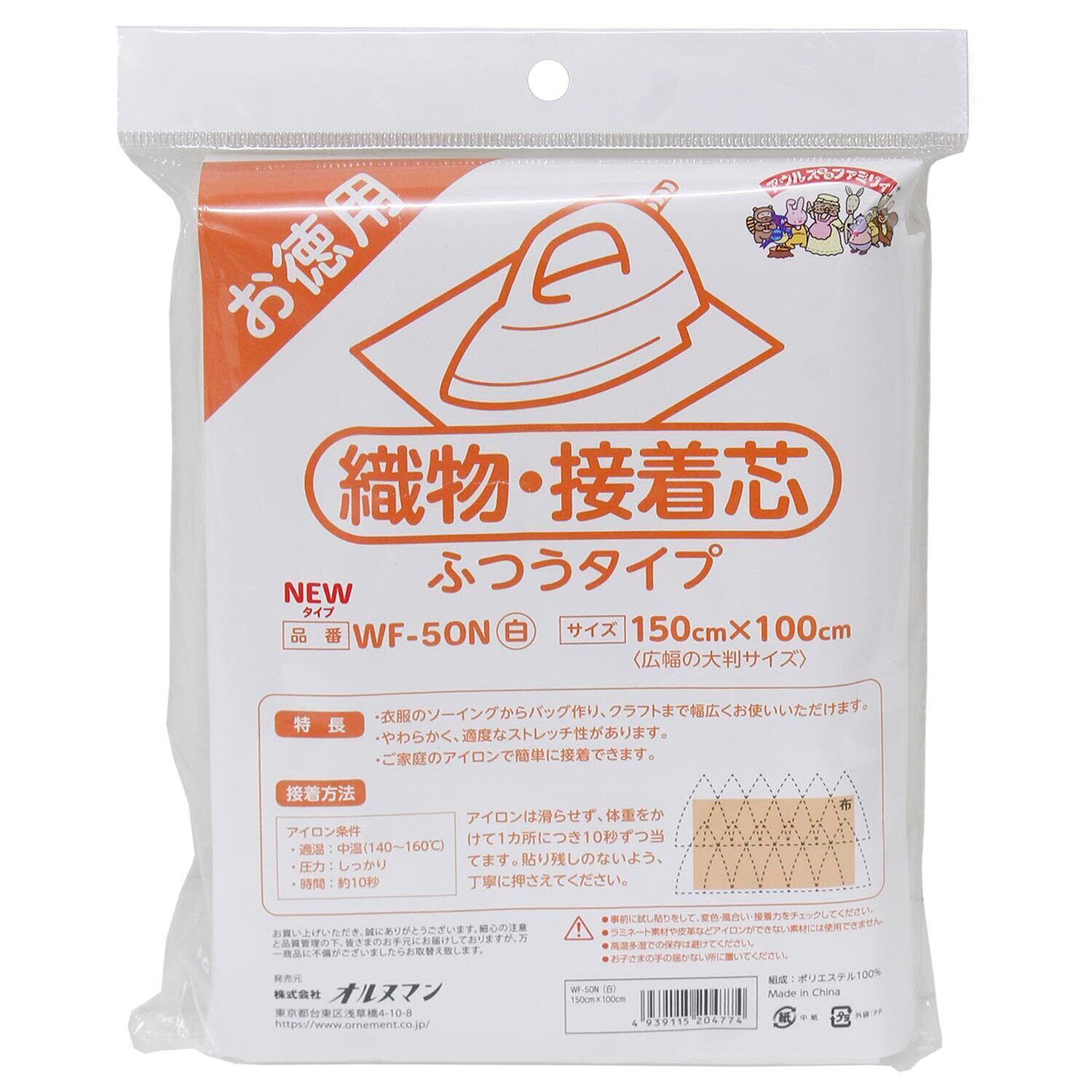 【在庫処分】オルヌマン アウルスママ 織物接着芯地 150×100cm 片面接着 白 ふつうタイプ WF-50N