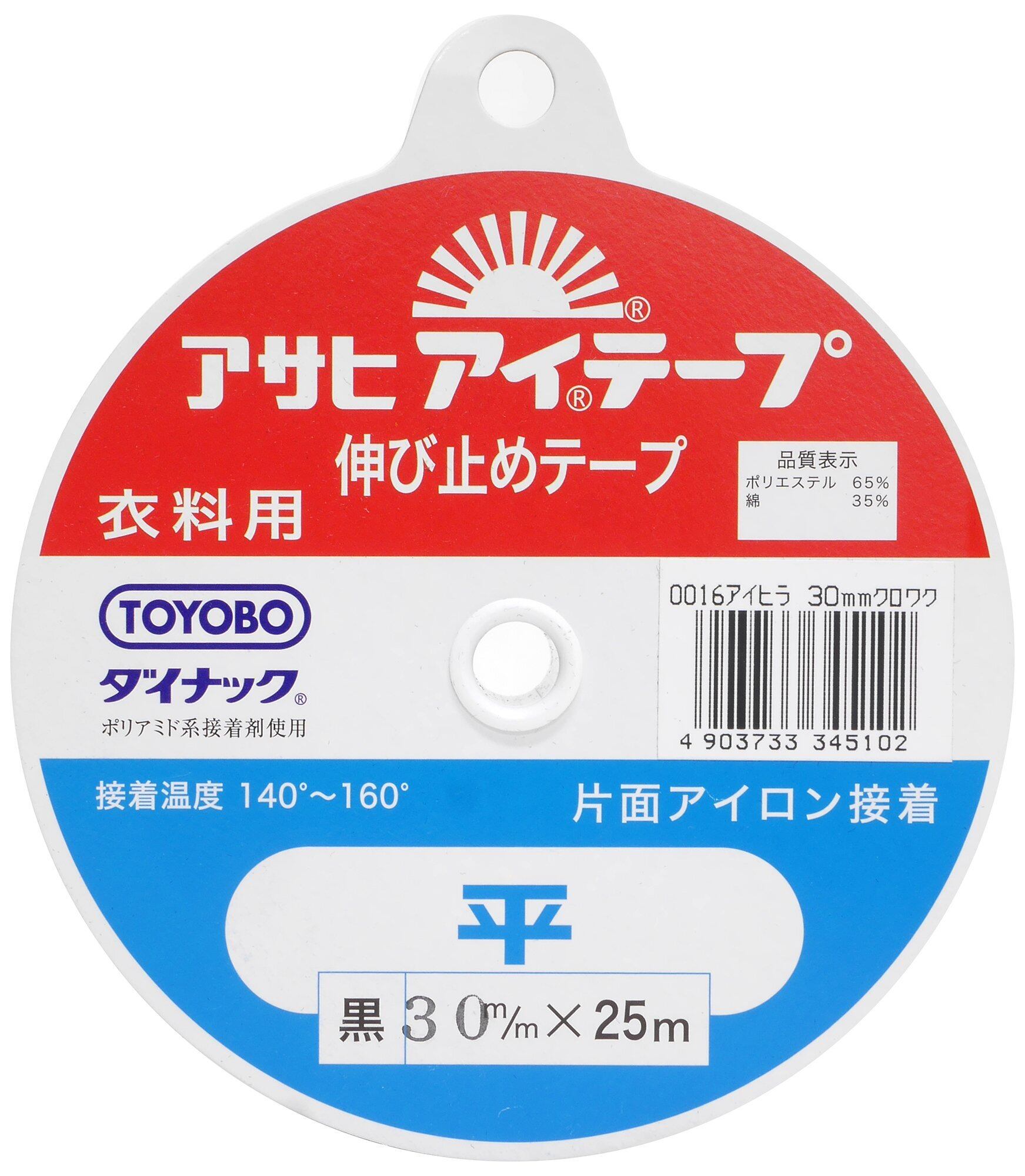 【新着商品】アサヒ(Asahi) アイテープ 伸び止めテープ 衣料用 片面アイロン接着 平 幅30mm×25m巻 黒