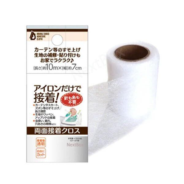 【在庫処分】アイロンだけで密着 両面接着クロス10m×7cm カーテンやスカート ズボン等の裾上げ アイロン接着材 衣類補修 接着布 接着クロス×1個