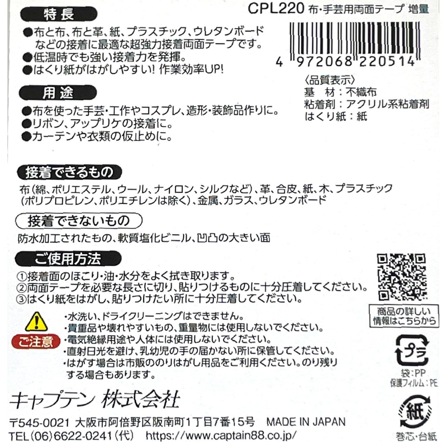 CAPTAIN88 キャプテン 布に強い 両面テープ 布用 増量 20mm幅×15m巻 CPL220