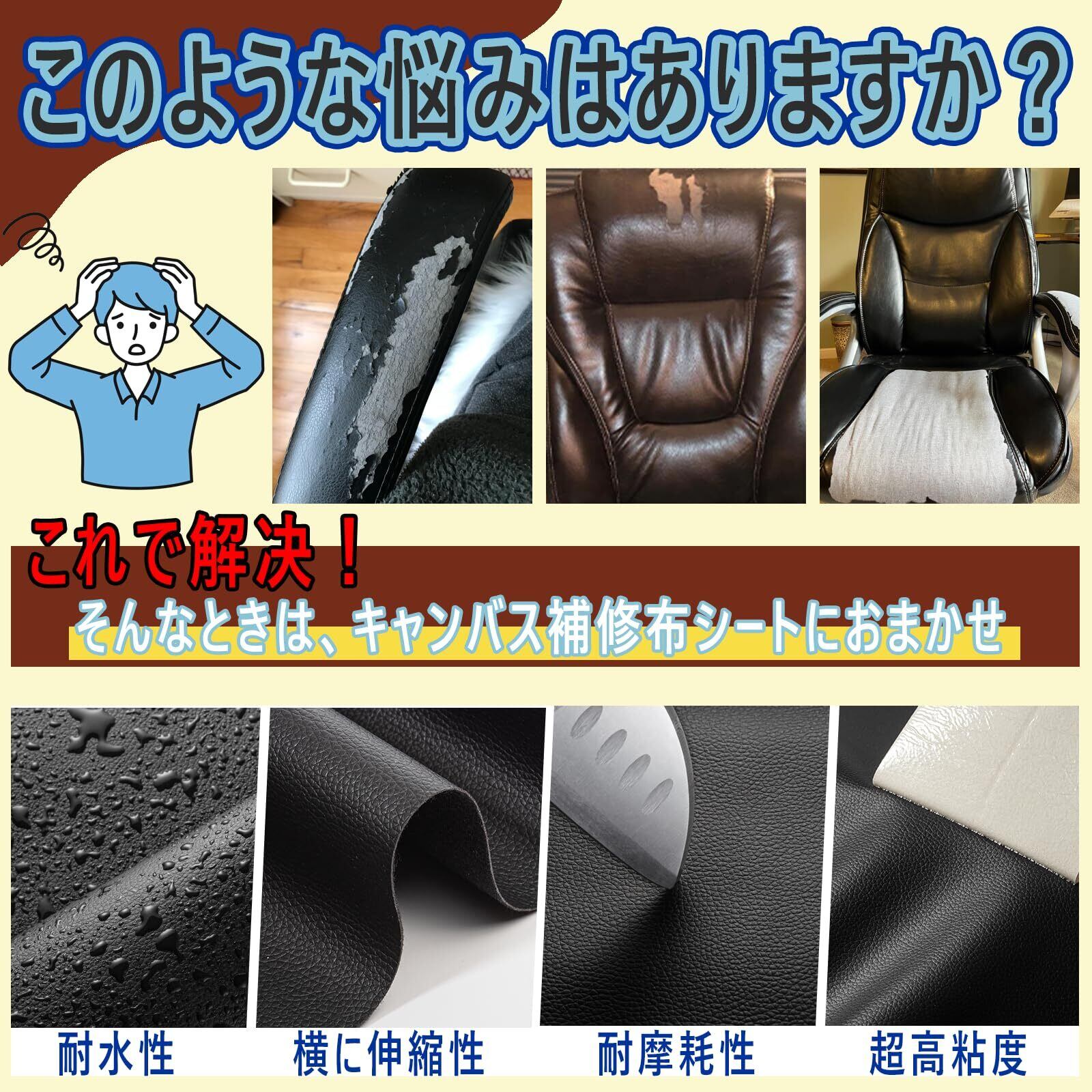 合皮補修シート 10cm×160cm ソファー レザー補修テープ 防水 耐摩耗 合成皮革 テープ 自己粘着式 合皮生地 バイクシート 自転車 サドル 破れ 修理 (ブラック)