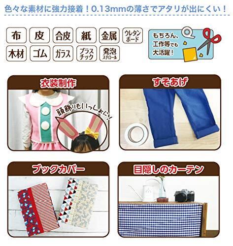 水洗い可なので、すそあげ・衣装・カフェカーテンなどの制作にオススメ! しなやかで曲面にもしっかり接着します。