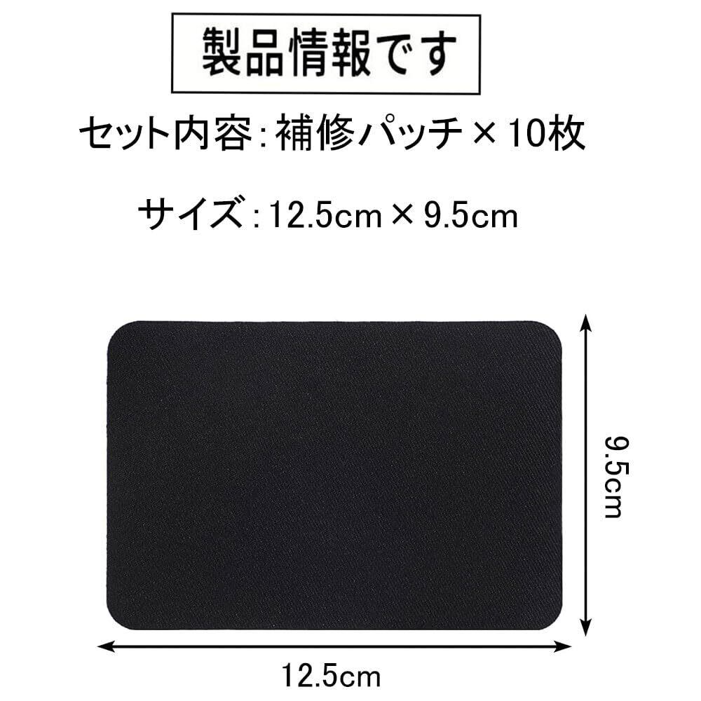 【製品情報です】セット内容:補修パッチ×10枚。サイズ:12.5cm×9.5cm。材質:布。