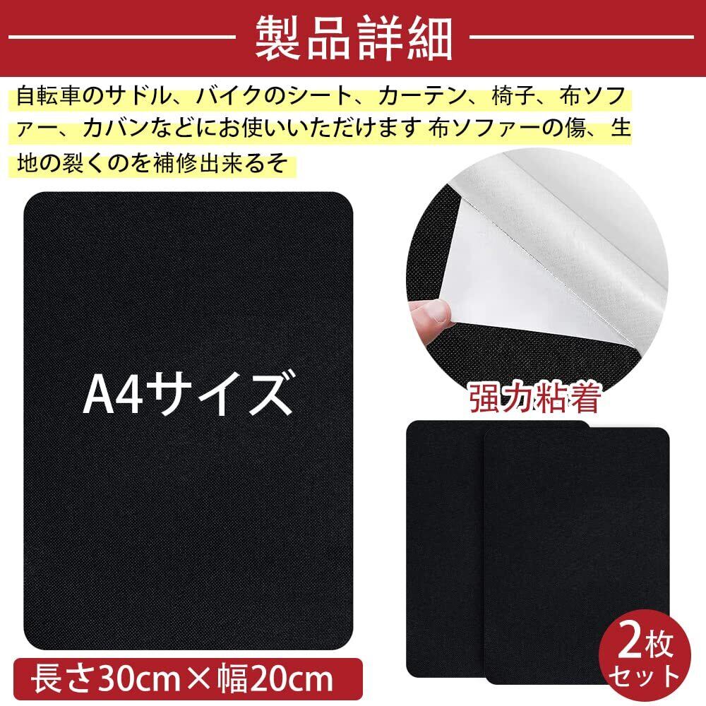 補修布シート 約20x30cm 2枚 リネン製 補修布 普通地~厚地用 布ソファー補修テープ シールタイプ 生地補修テープ 布穴補修 布ソファー補修 カーテン補修 椅子シート補修(黒)