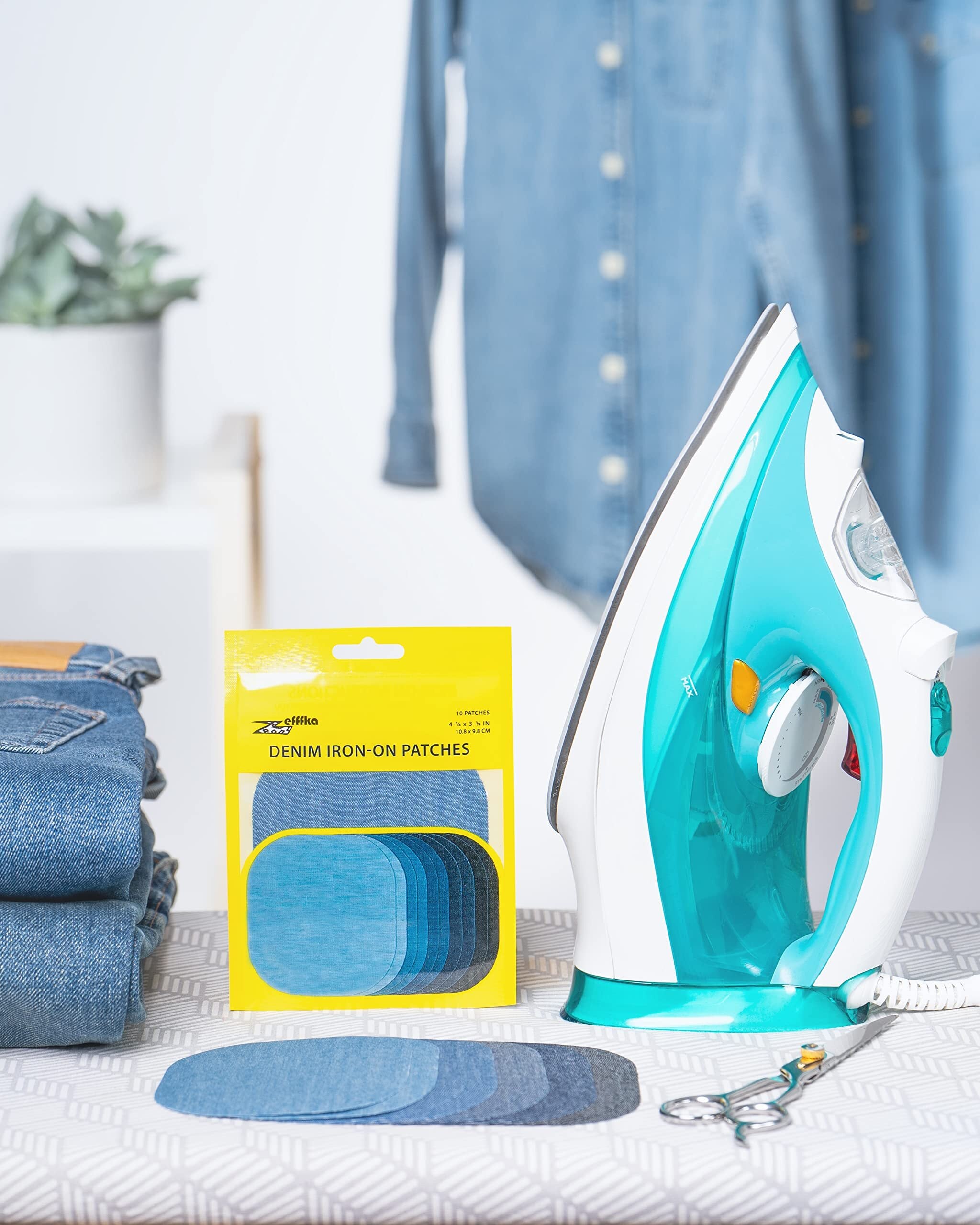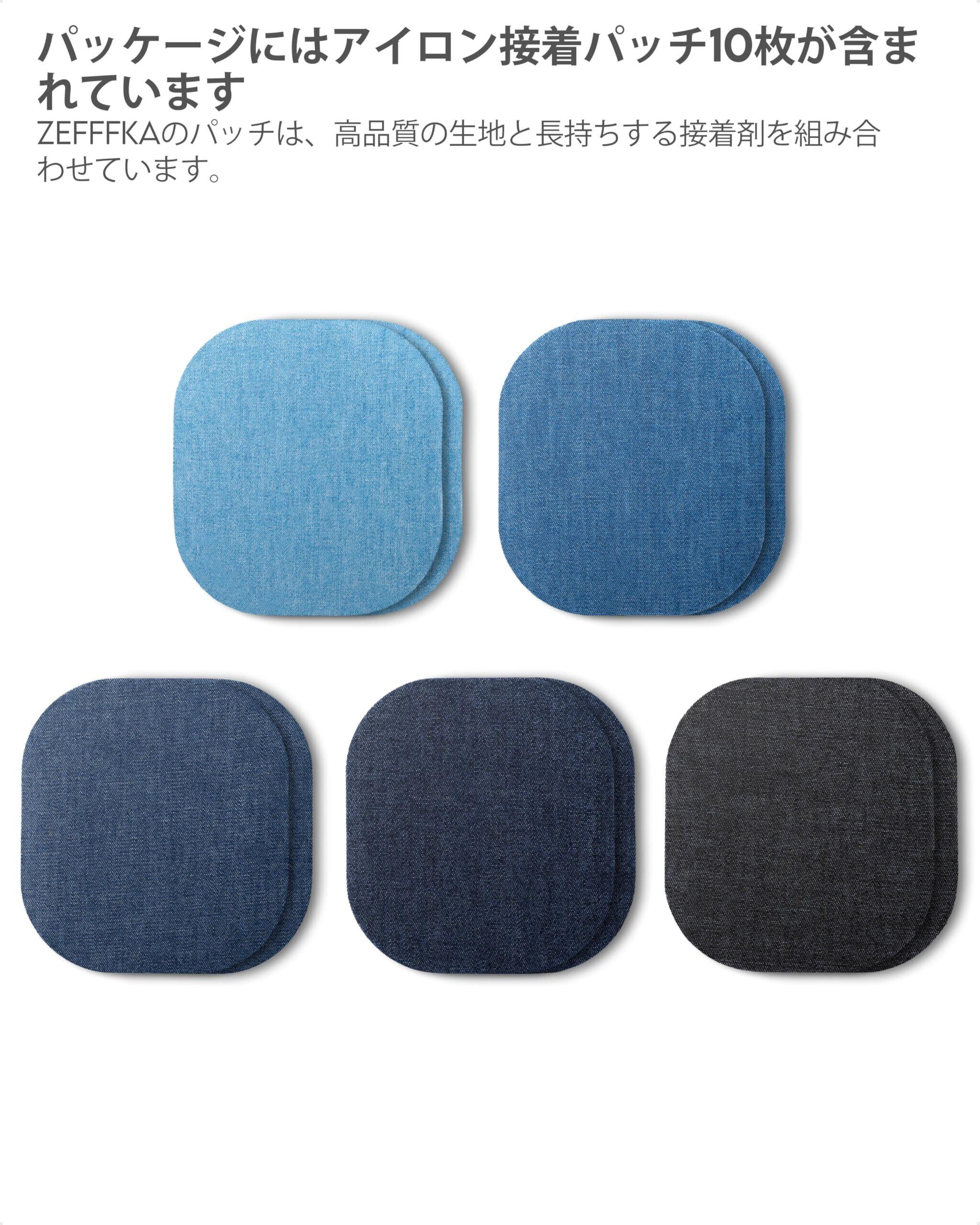 ZEFFFKAプレミアムクオリティデニム内側と外側のアイアンオンジーンズパッチ最強の接着剤綿100%ブルーリペアデコレーションキットのさまざまな色合い10ピースサイズ4-1/4" x 3-3/4" (9.8 cm x 10.8 cm)