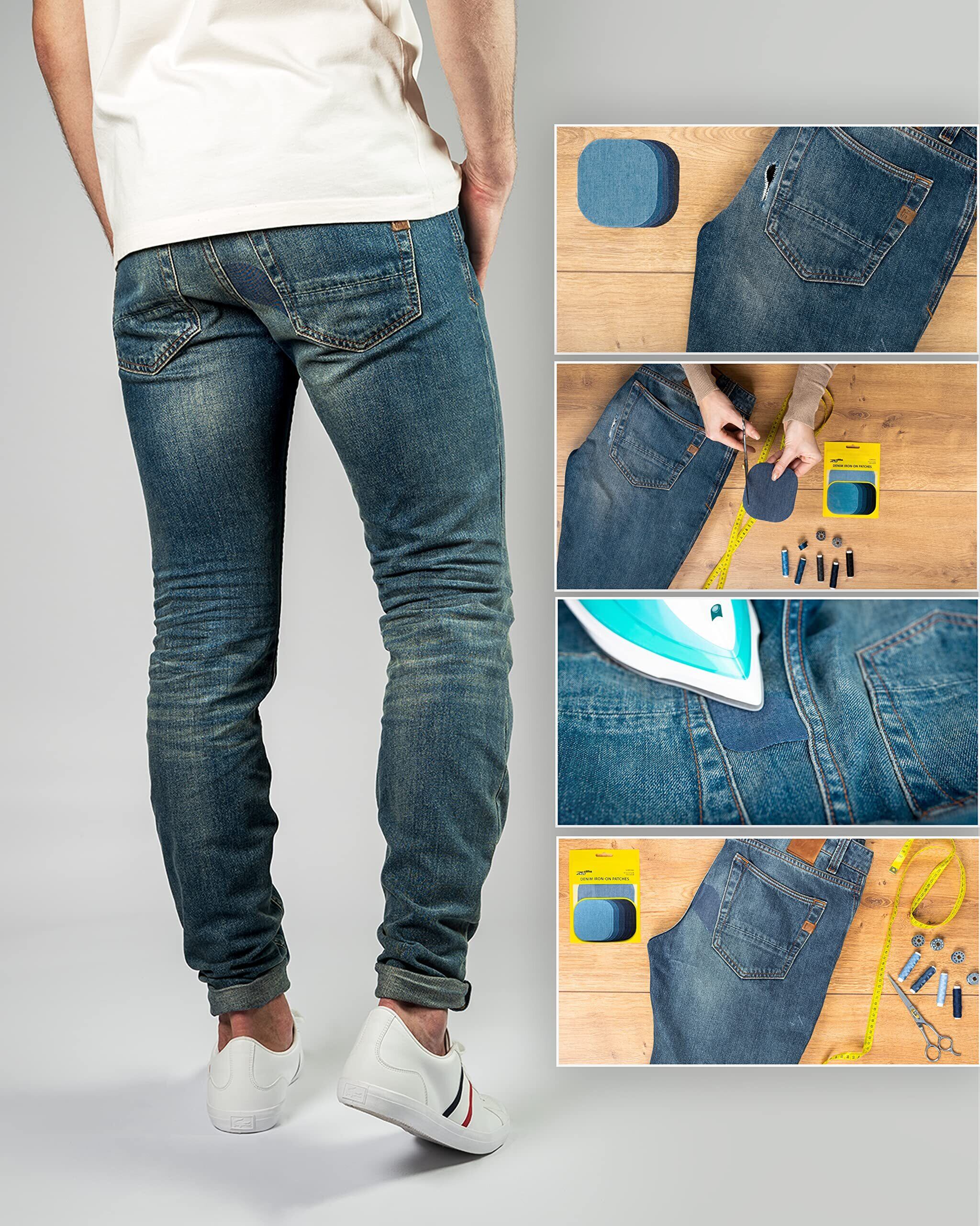 【新春セール】ZEFFFKAプレミアムクオリティデニム内側と外側のアイアンオンジーンズパッチ最強の接着剤綿100%ブルーリペアデコレーションキットのさまざまな色合い10ピースサイズ4-1/4" x 3-3/4" (9.8 cm x 10.8 cm)