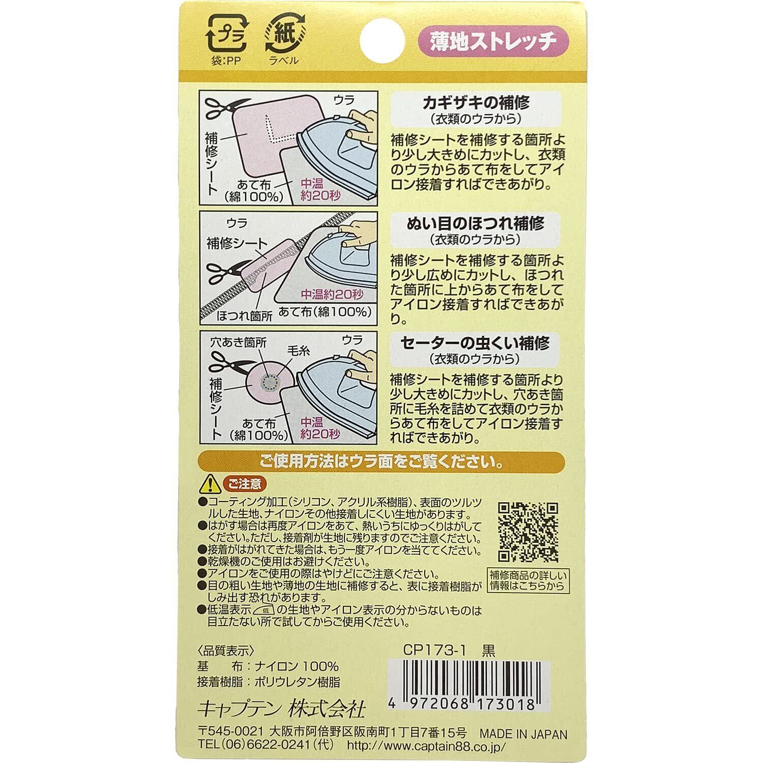CAPTAIN88 キャプテン 簡単 補修 シリーズ インナー の補修 シート 6cm幅×長さ25cm #1 黒 アイロン接着 CP173