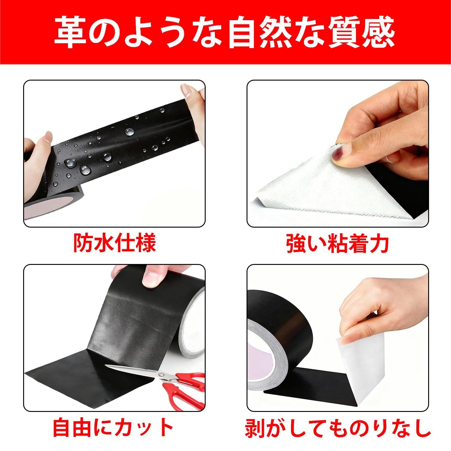 【繊維補強構造・超強粘着&防水・耐候性】繊維補強構造を採用し、裂けにくく耐久性を向上。粘着面には特殊複合素材(天然ビニール樹脂)を使用し、強力な粘着力を実現しました。防水性・耐熱性・耐寒性・耐候性に優れ、日差しにも強く、-25℃~80℃の環境下でも安定した性能を発揮。バイクシート補修や屋外のテント補修テープ用途でも安心して使用できます。