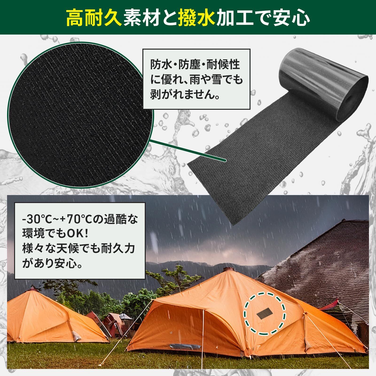 【防水・耐候性&洗濯可能】特殊粘着素材により、防水性が高く冷水での洗濯も可能。使用温度範囲は-30℃~+70℃で、雨・雪・風・紫外線・砂塵など厳しい環境下でも安定した補修効果を発揮します。