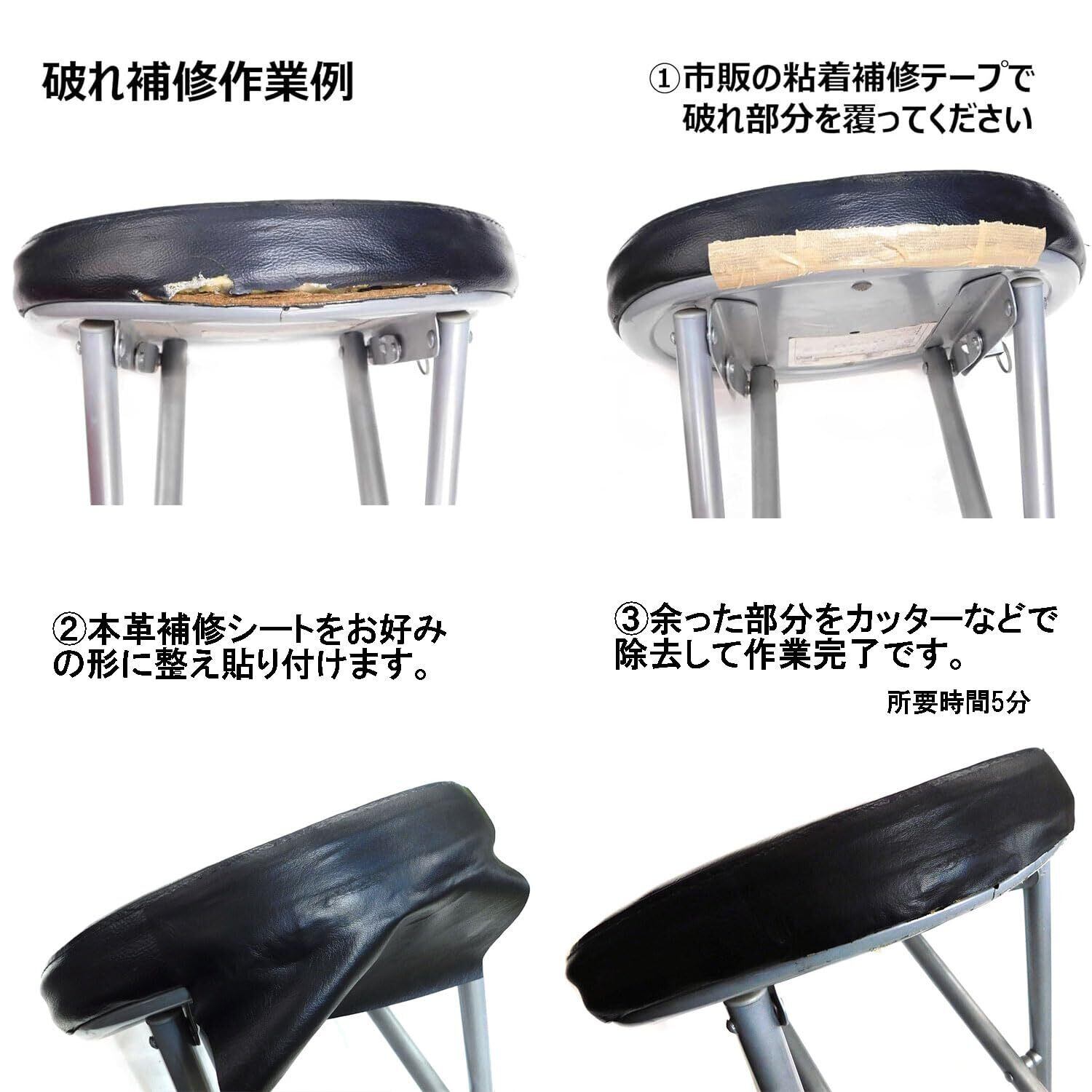 本革補修シート リメイクシート 丸(直径4cm) 黒:10枚